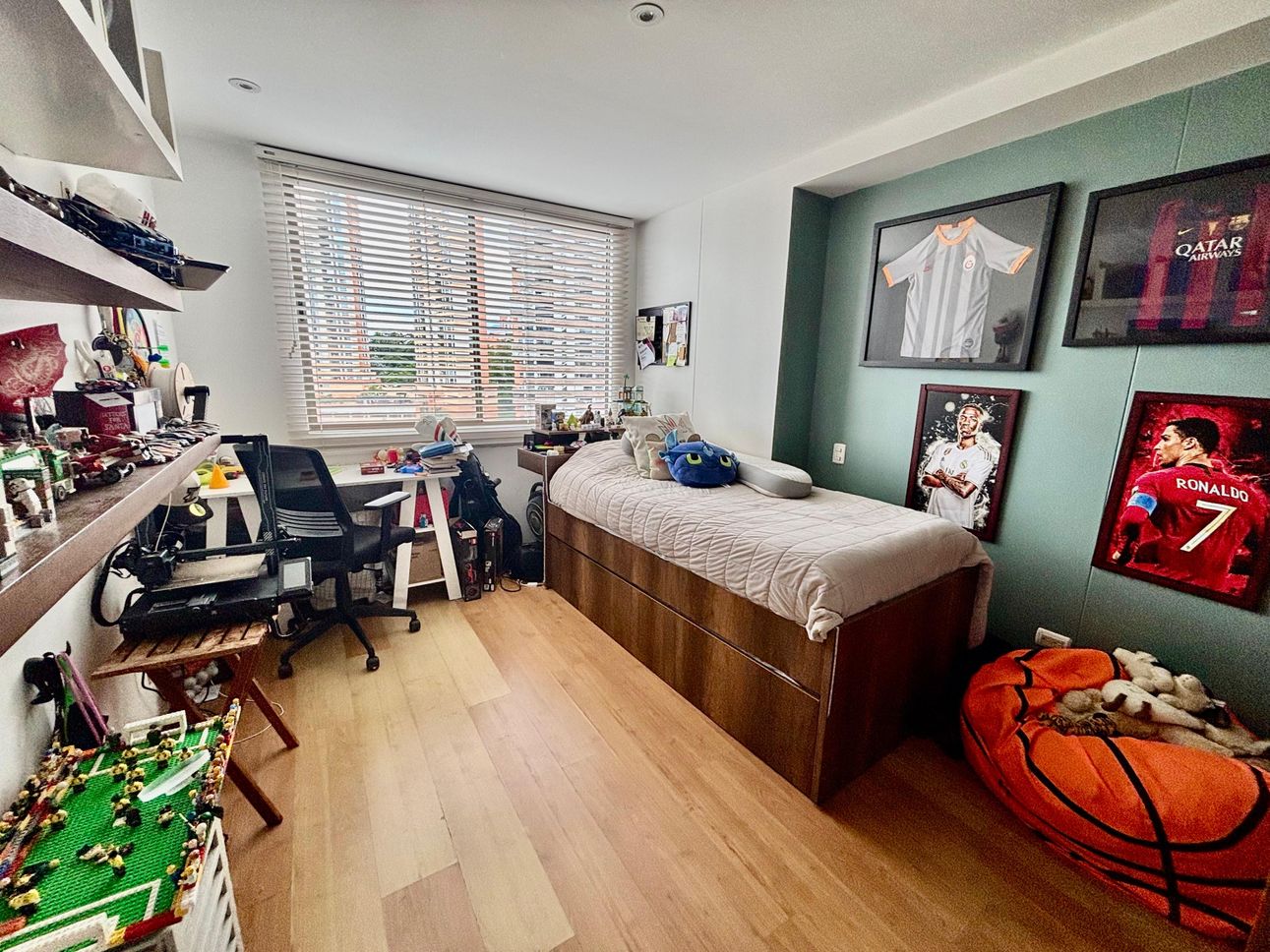 Cuenta con 3 alcobas, cada una con baño privado, baño social, alcoba de servicio con baño, moderna cocina abierta ideal para compartir, y un estudio independiente perfecto para trabajar desde casa o disfrutar de un buen libro. Además, tiene 2 parqueaderos paralelos y cuarto útil.