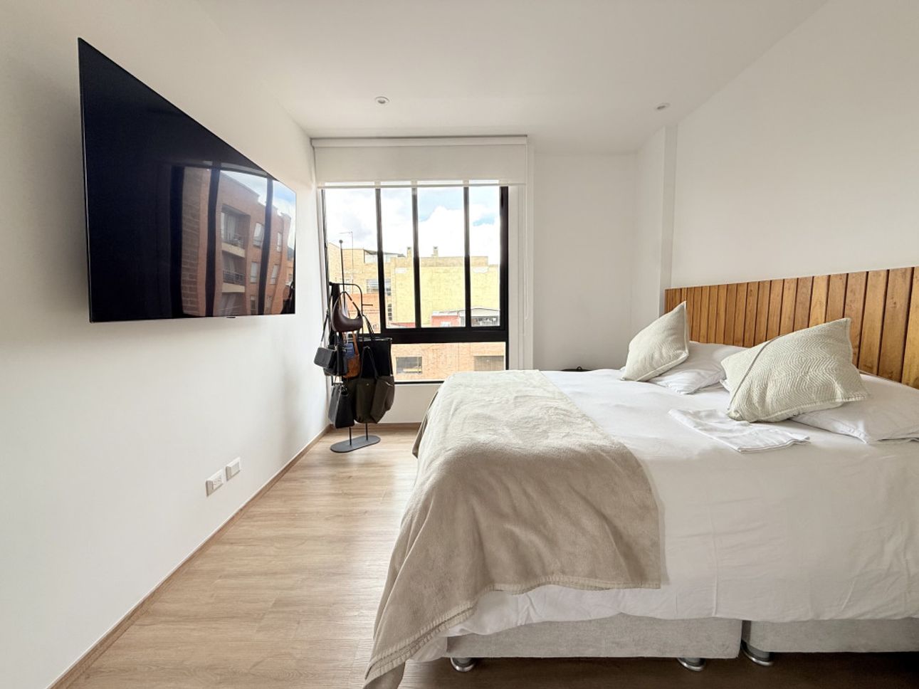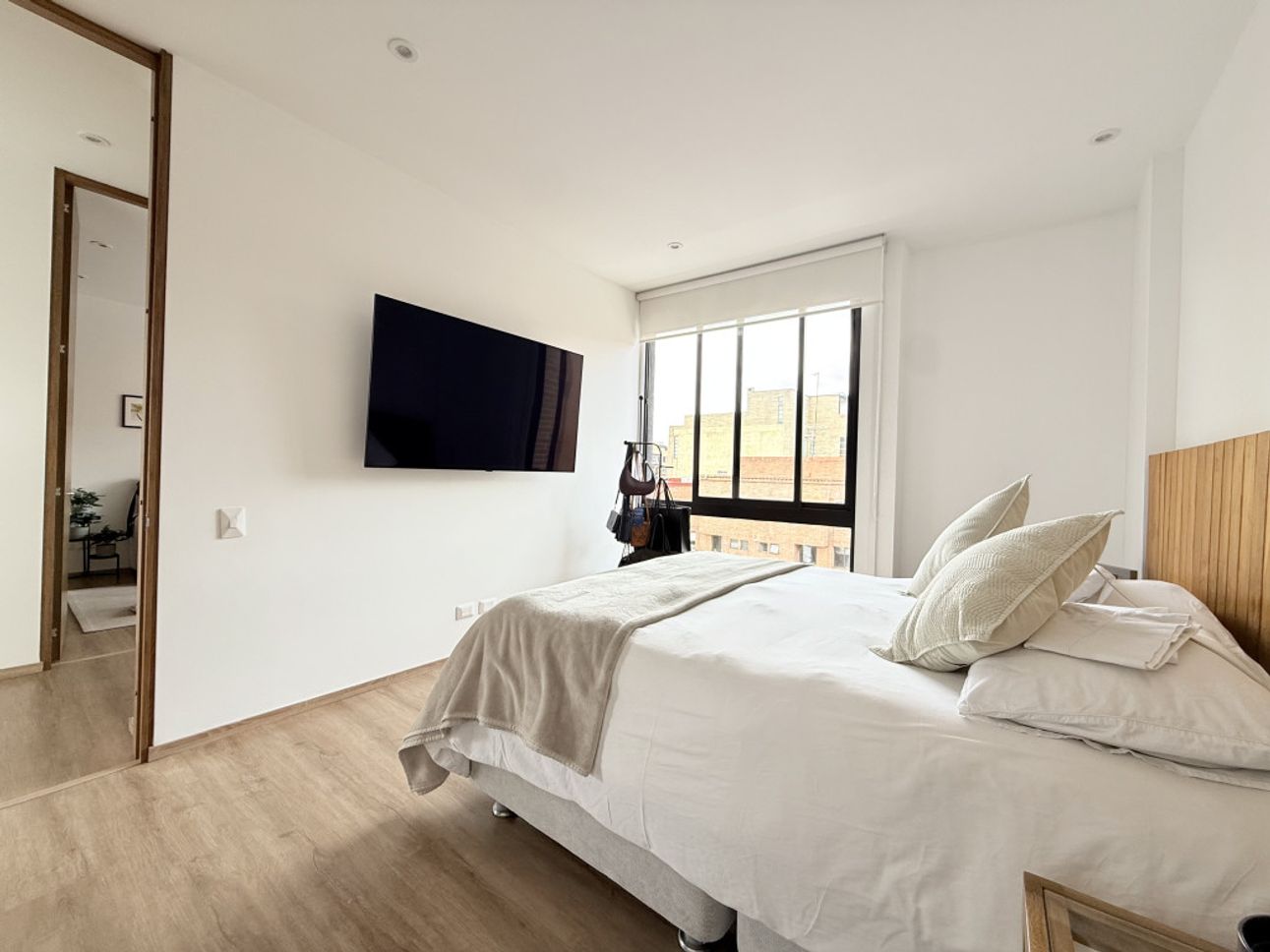 Apartamento en arriendo en Santa Paula de 98 m², ideal para quienes buscan comodidad, ubicación y excelente iluminación. Cuenta con 2 habitaciones, la principal con baño privado, baño completo para la habitación auxiliar y baño social. Zona social integrada con balcón con vista occidental, lo que garantiza sol de la tarde y espacios cálidos y luminosos. Cocina abierta con estufa a gas y lavaplatos eléctrico, más zona de ropas independiente.