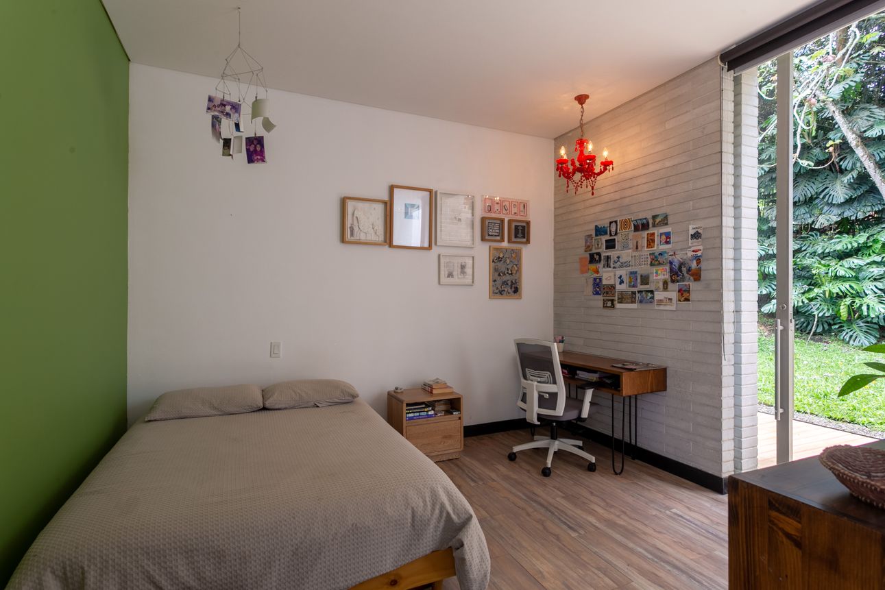 Con impresionantes vistas a las montañas y a la ciudad, la propiedad logra un equilibrio entre cercanía y serenidad. El diseño de la casa, obra de Juan Forero y Alejo Molina, ofrece cinco habitaciones amplias, una cocina abierta ideal para compartir en familia y un family room para momentos de esparcimiento.