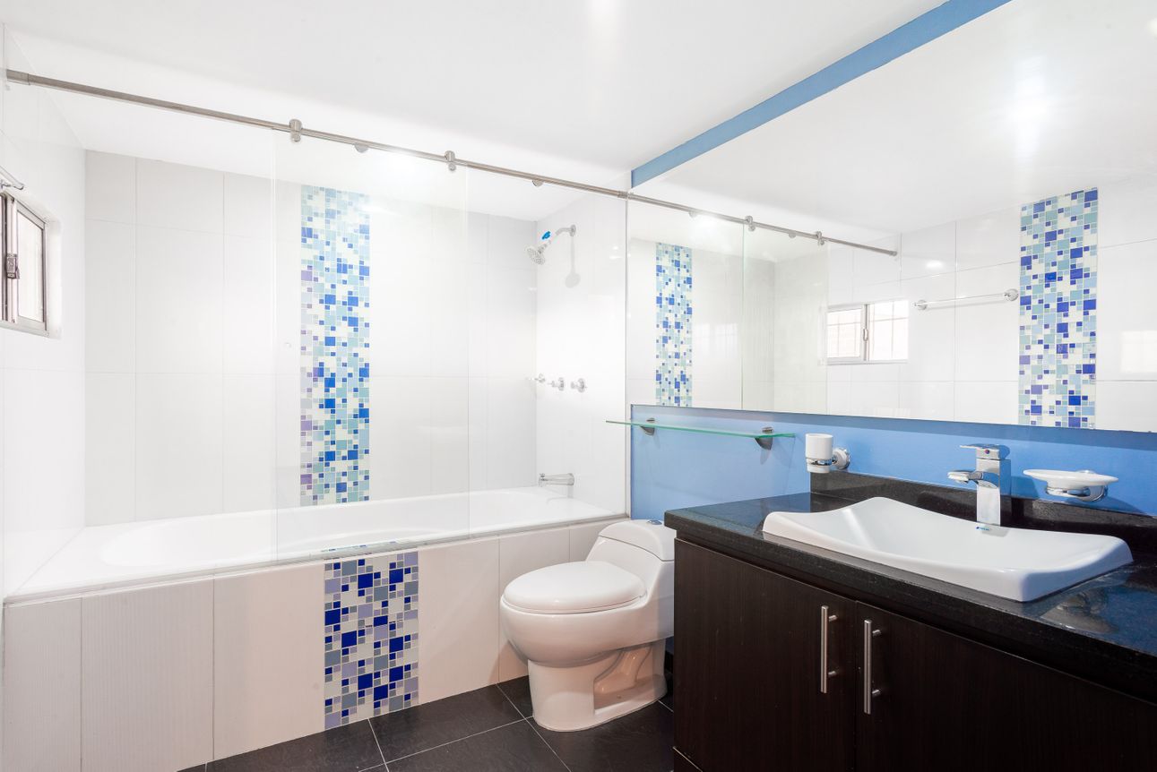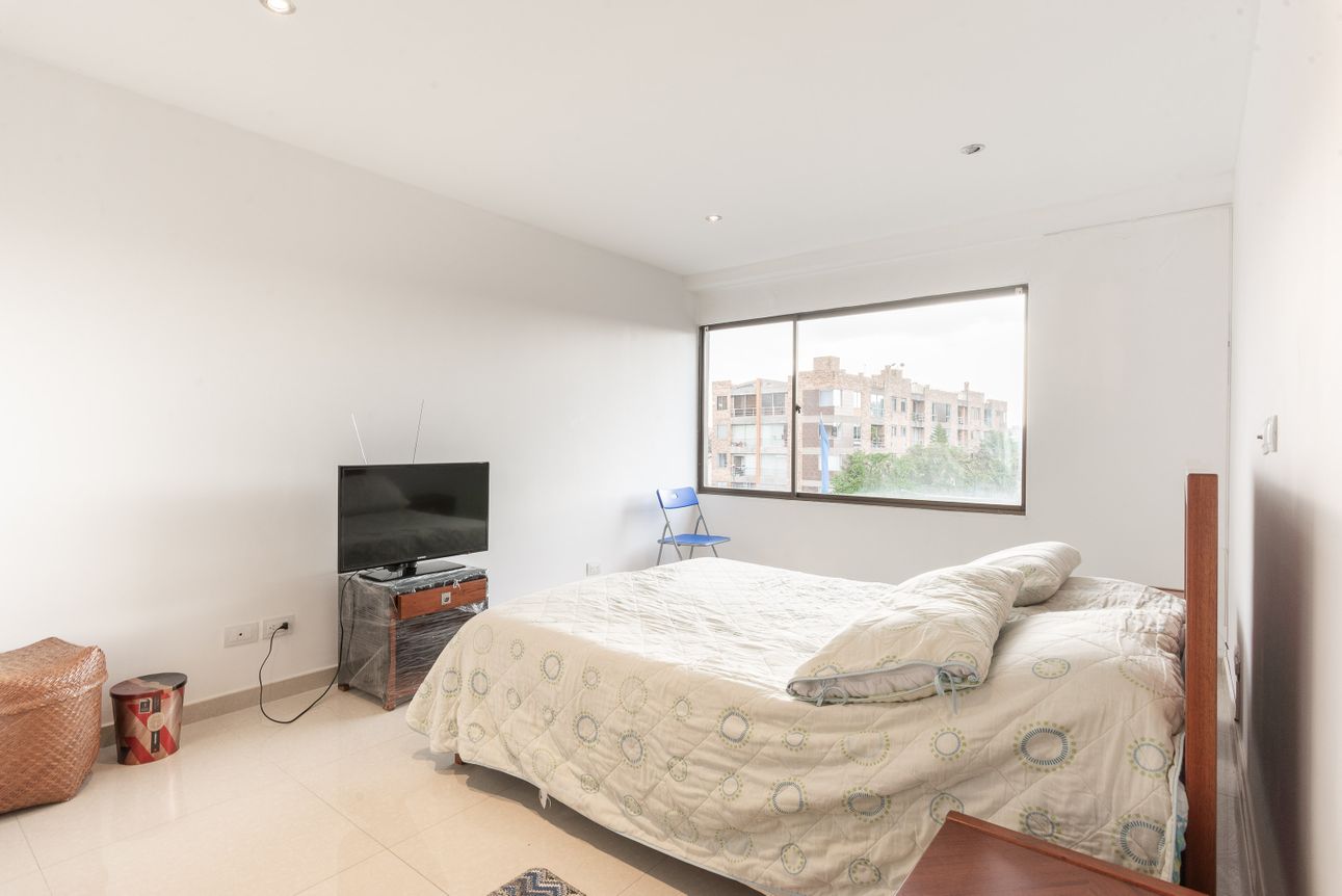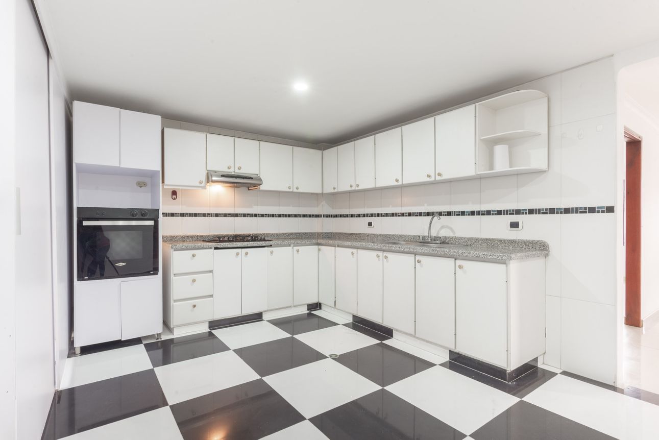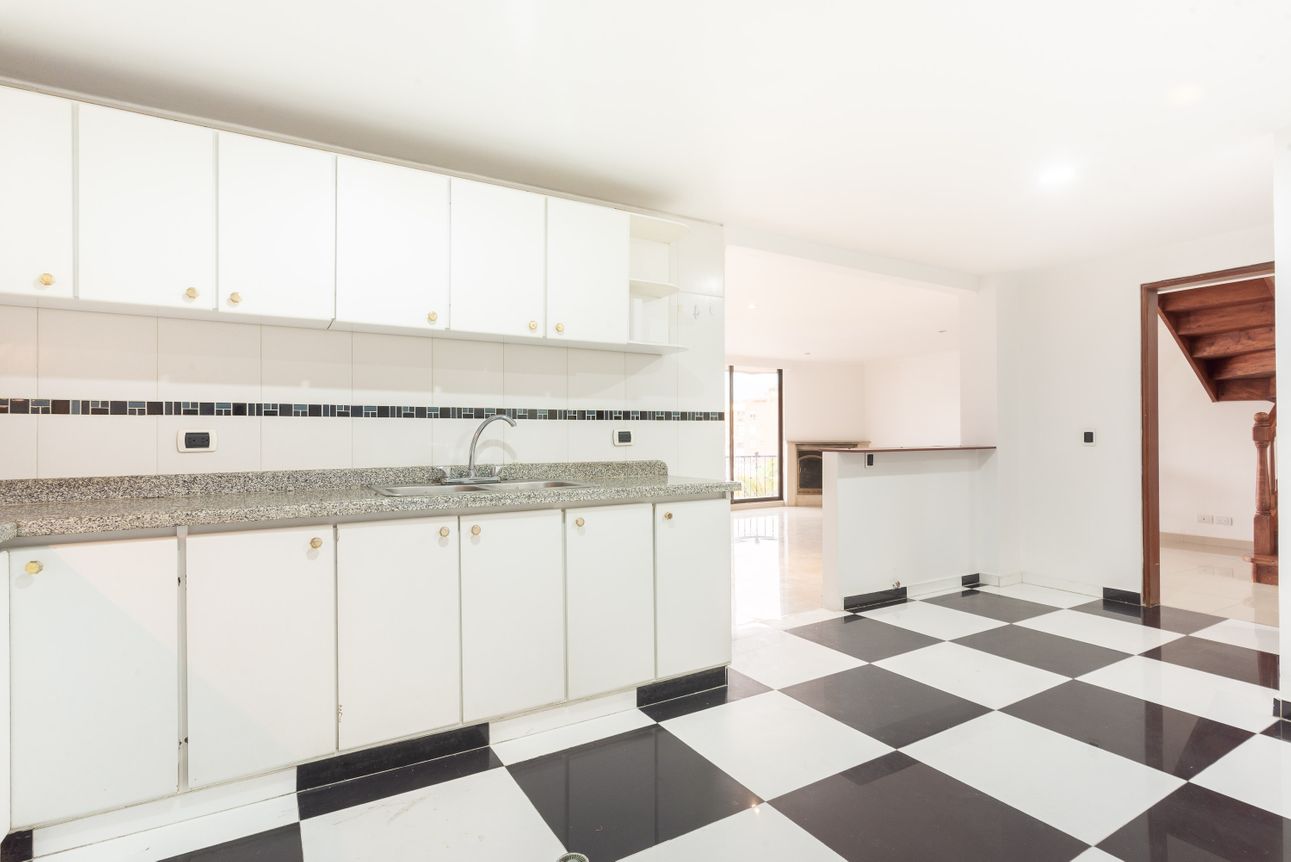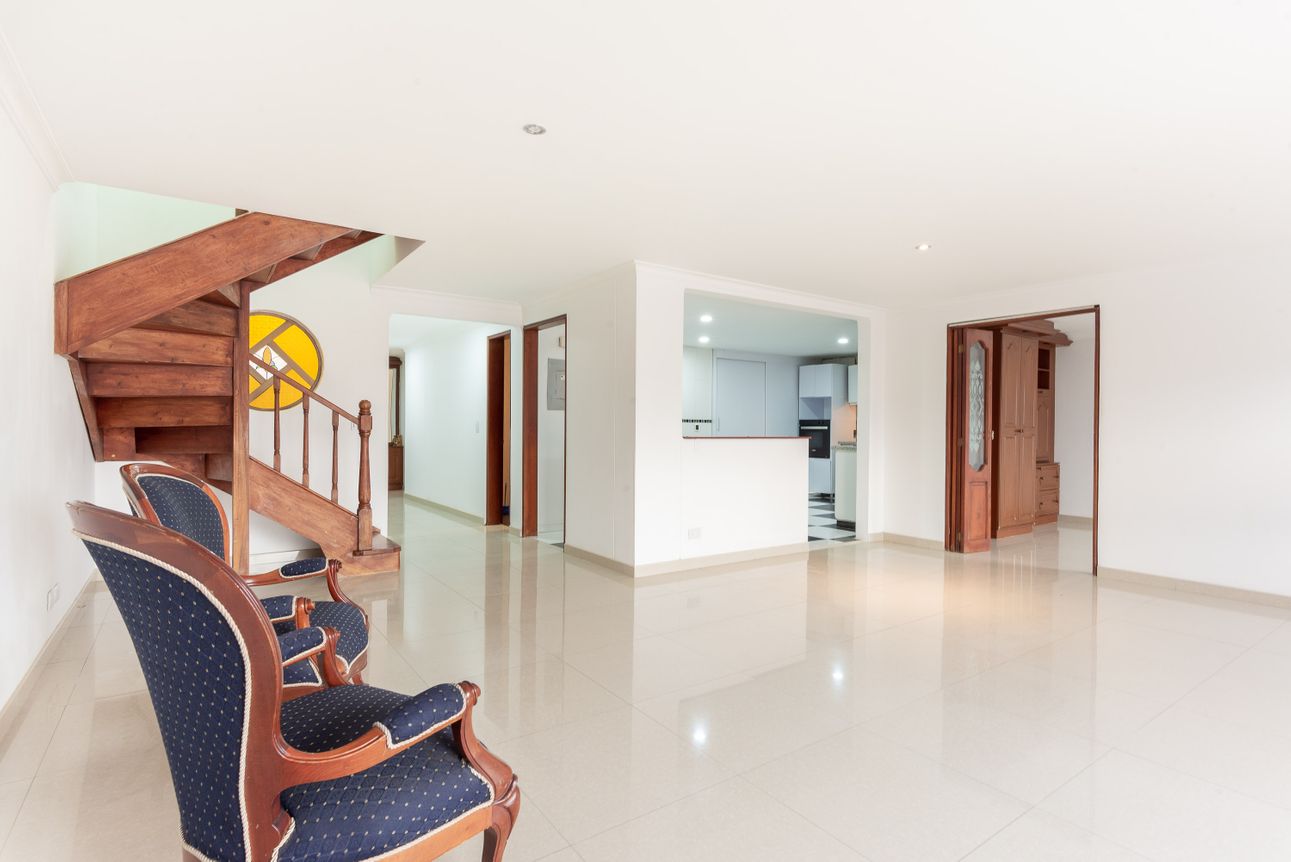El apartamento en su primer nivel cuenta con cocina semi abierta, con cuarto y baño de servicio, una extensa área social para sala-comedor, un estudio, chimenea y acceso a balcón, donde podrás observar los cerros orientales de Bogotá. También encontrarás un baño social, una sala de estar y tres habitaciones, una con baño privado, y las otras dos comparten baño.