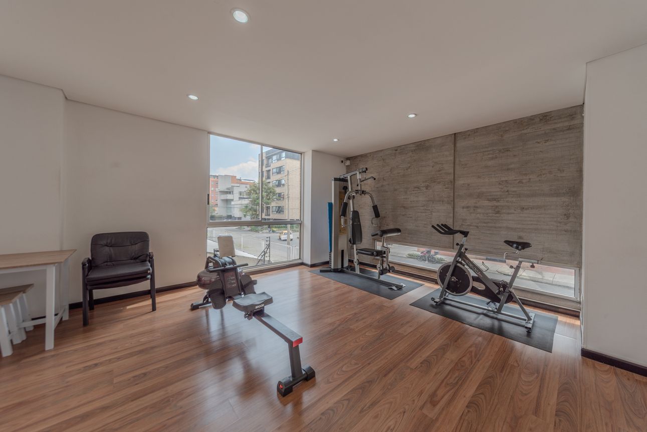 El edificio ofrece terraza BBQ, gimnasio, sala de reuniones y parqueadero para visitantes, zona de lavandería comunal y vigilancia permanente.
