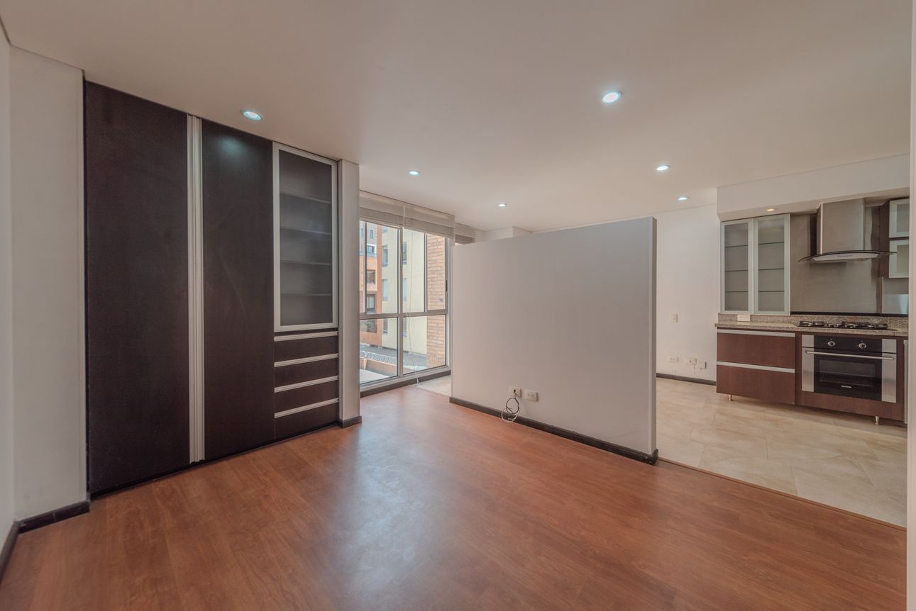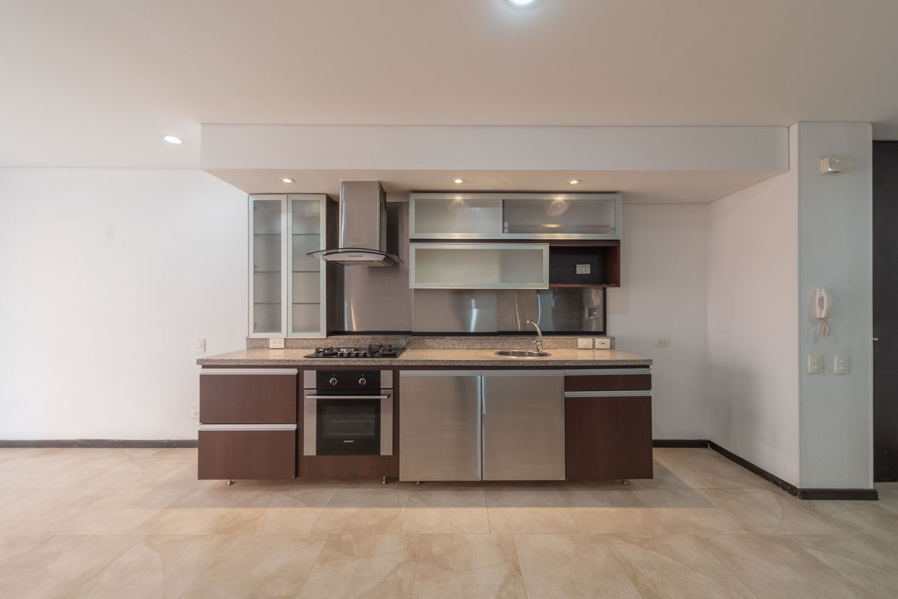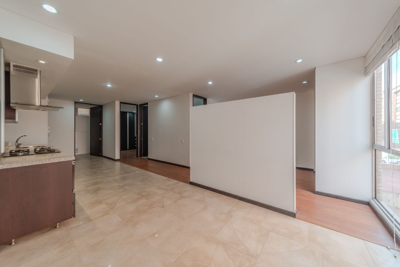 Apartamento con área de 67 m2, ubicado en el piso 3 (acceso por ascensor), interior con buena iluminacion. Sala y comedor en el mismo espacio, chimenea, cocina abierta, la zona de lavandería independiente y cerrada con ventilación; dos alcobas con buen espacio, una de ellas semicerrada y dos baños.
