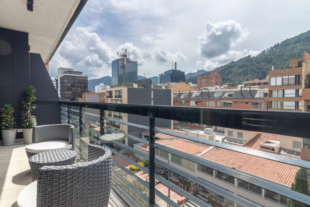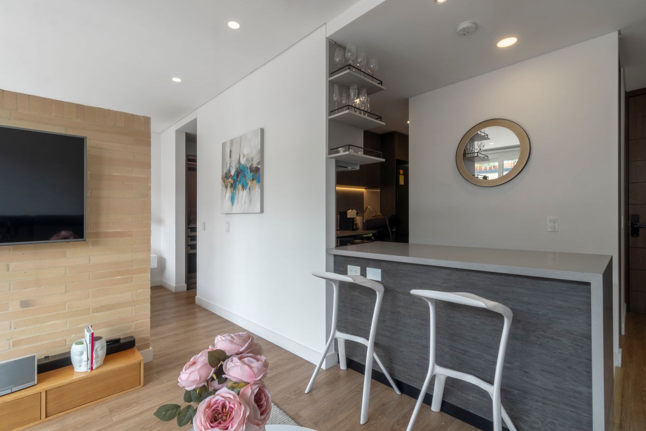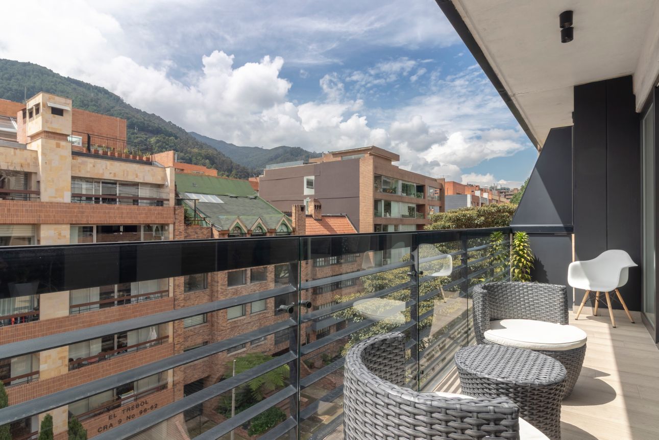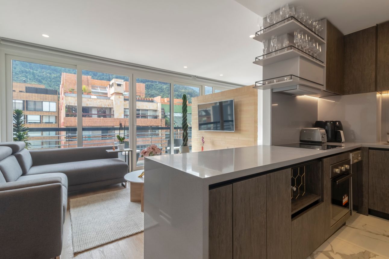 Este apartamento amoblado se encuentra en la tranquila zona de Chicó Reservado. Ubicado en un piso alto, ofrece una vista magnífica a las montañas para disfrutar cada día. La cocina americana y la sala con chimenea a gas brindan un espacio acogedor e ideal para compartir momentos especiales.