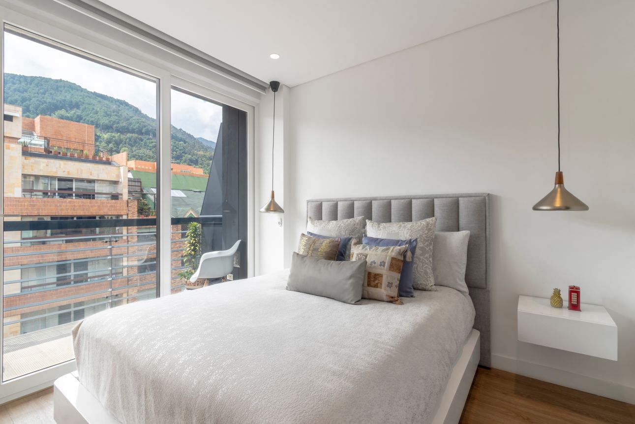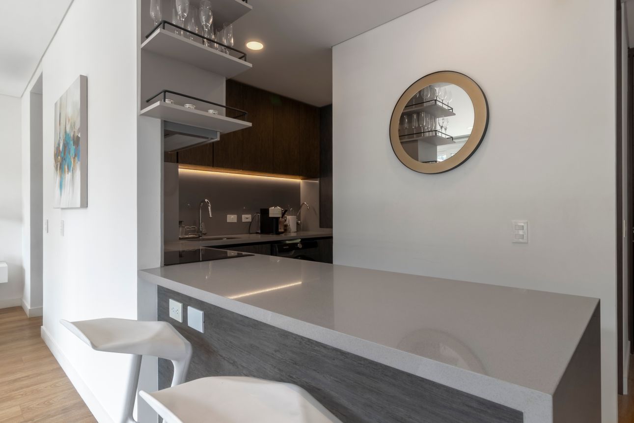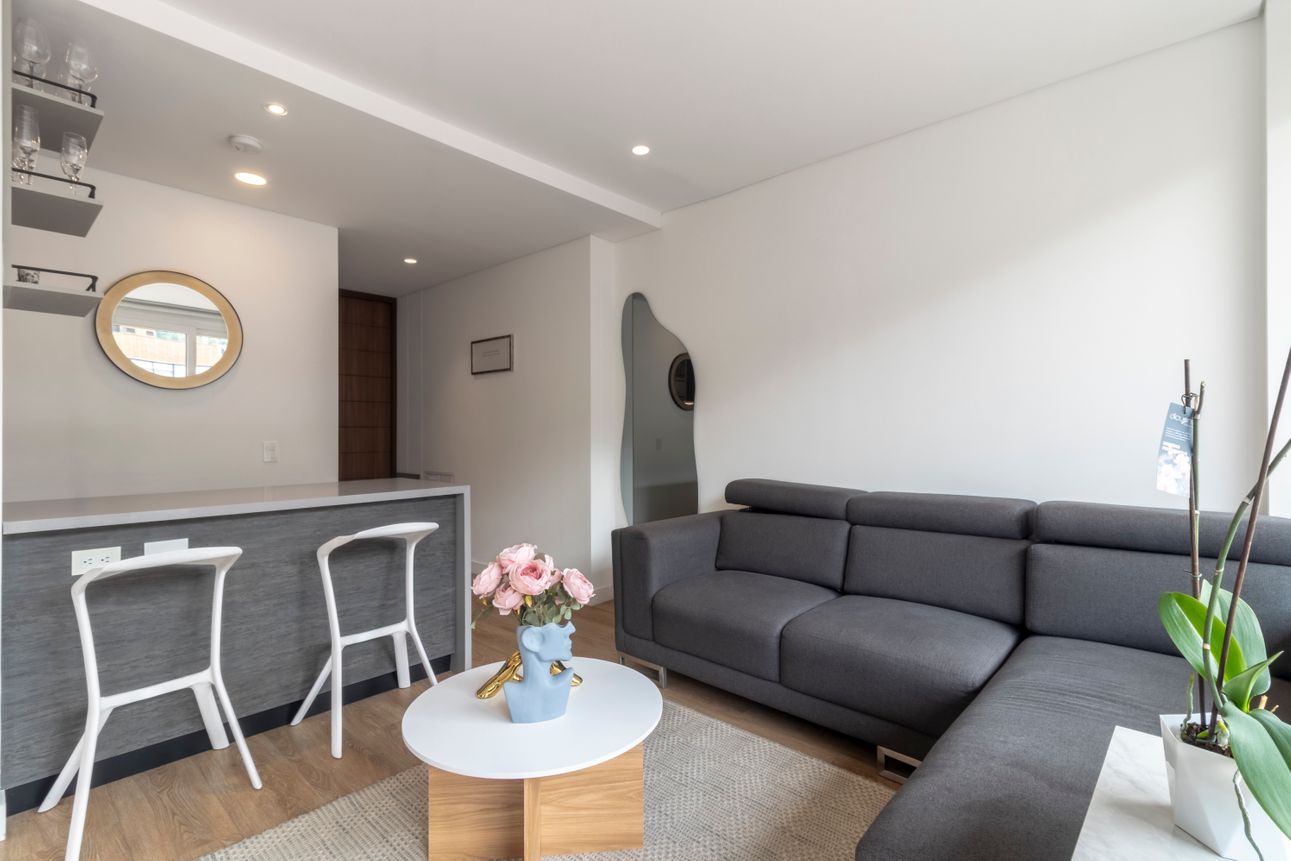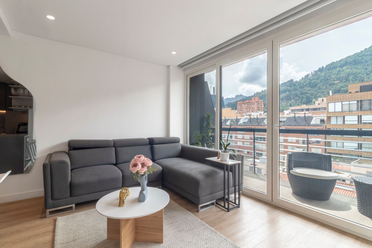 Este apartamento amoblado se encuentra en la tranquila zona de Chicó Reservado. Ubicado en un piso alto, ofrece una vista magnífica a las montañas para disfrutar cada día. La cocina americana y la sala con chimenea a gas brindan un espacio acogedor e ideal para compartir momentos especiales.