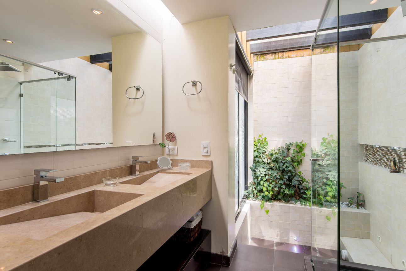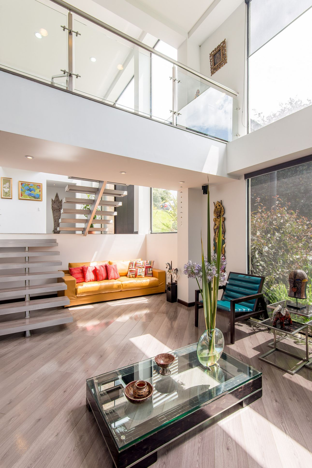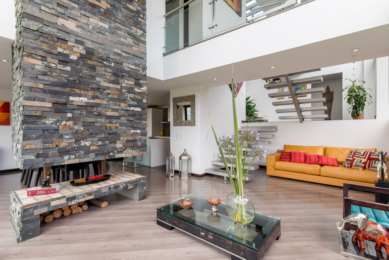 En el primer piso encuentras también una de las tres habitaciones, con su baño y linda vista. Junto a la entrada están las escaleras que te comunican con el segundo nivel donde encuentras una sala de estar y las otras dos habitaciones, con baño privado cada una y acceso a balcones.