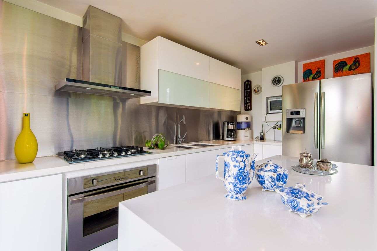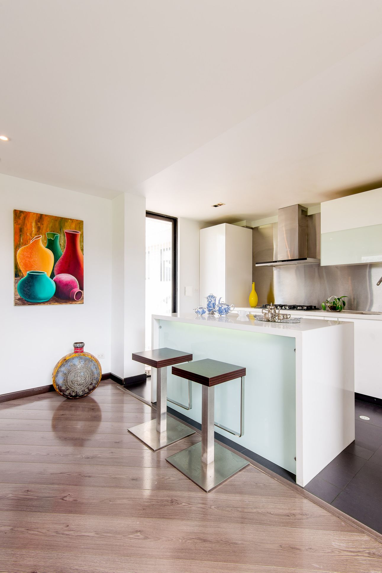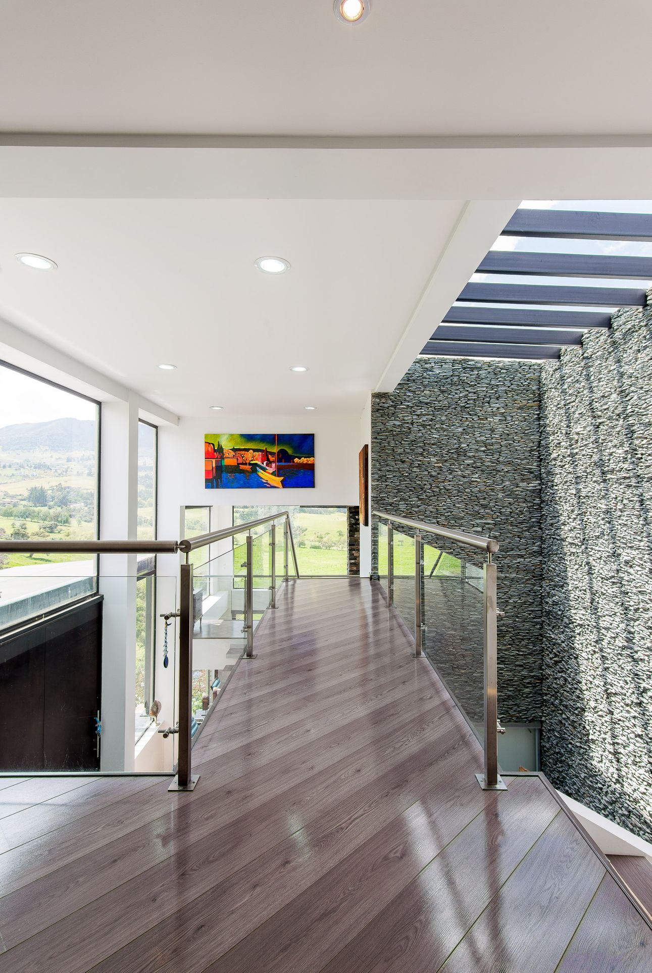 En el primer piso encuentras también una de las tres habitaciones, con su baño y linda vista. Junto a la entrada están las escaleras que te comunican con el segundo nivel donde encuentras una sala de estar y las otras dos habitaciones, con baño privado cada una y acceso a balcones.