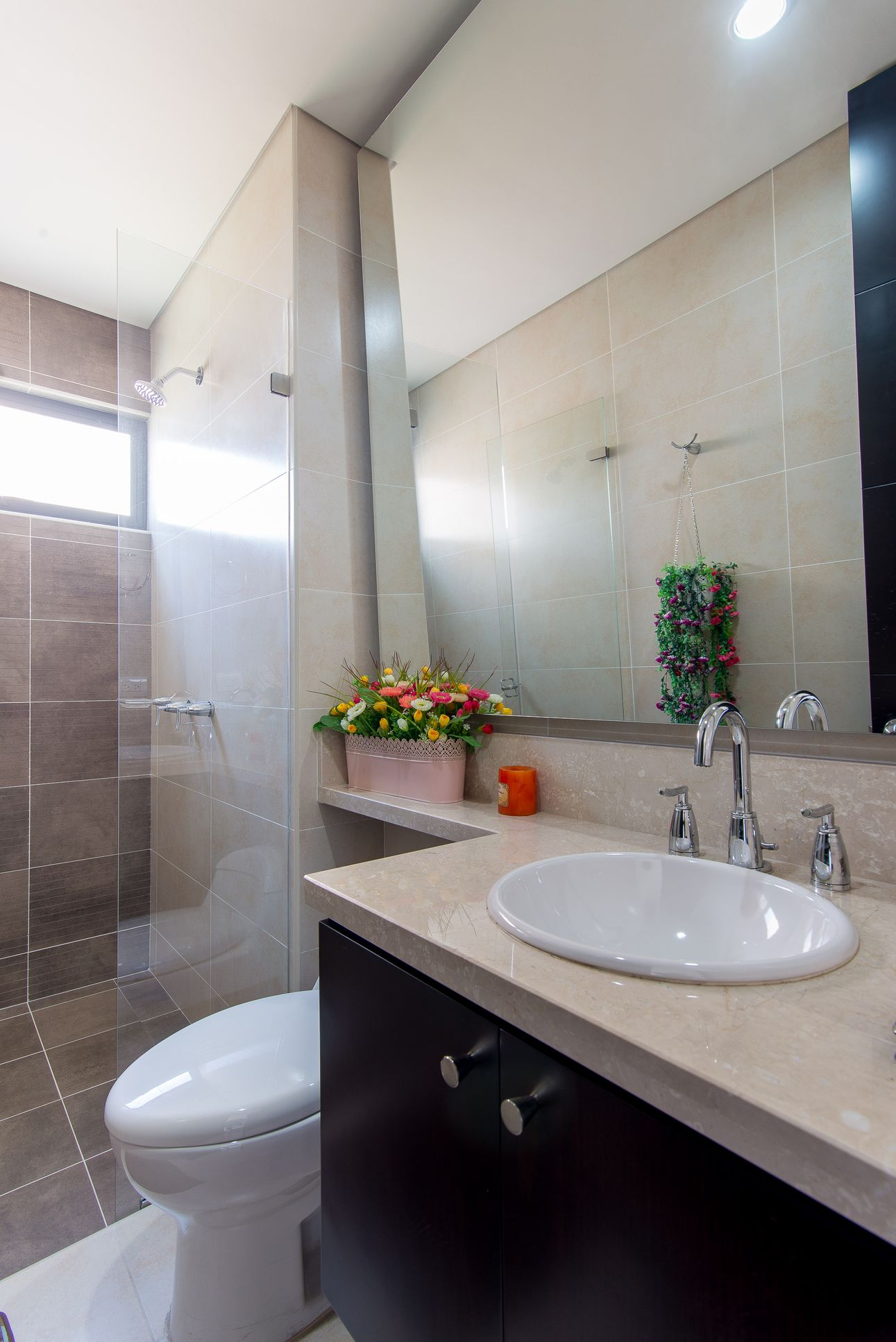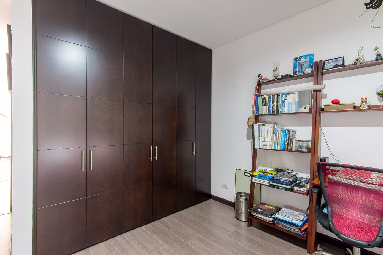 Junto a la zona social está el pasillo que conduce a las tres habitaciones y la sala de estar con acceso a un balcón. Cada alcoba cuenta con su baño privado, la principal además tiene su walk-in closet.
