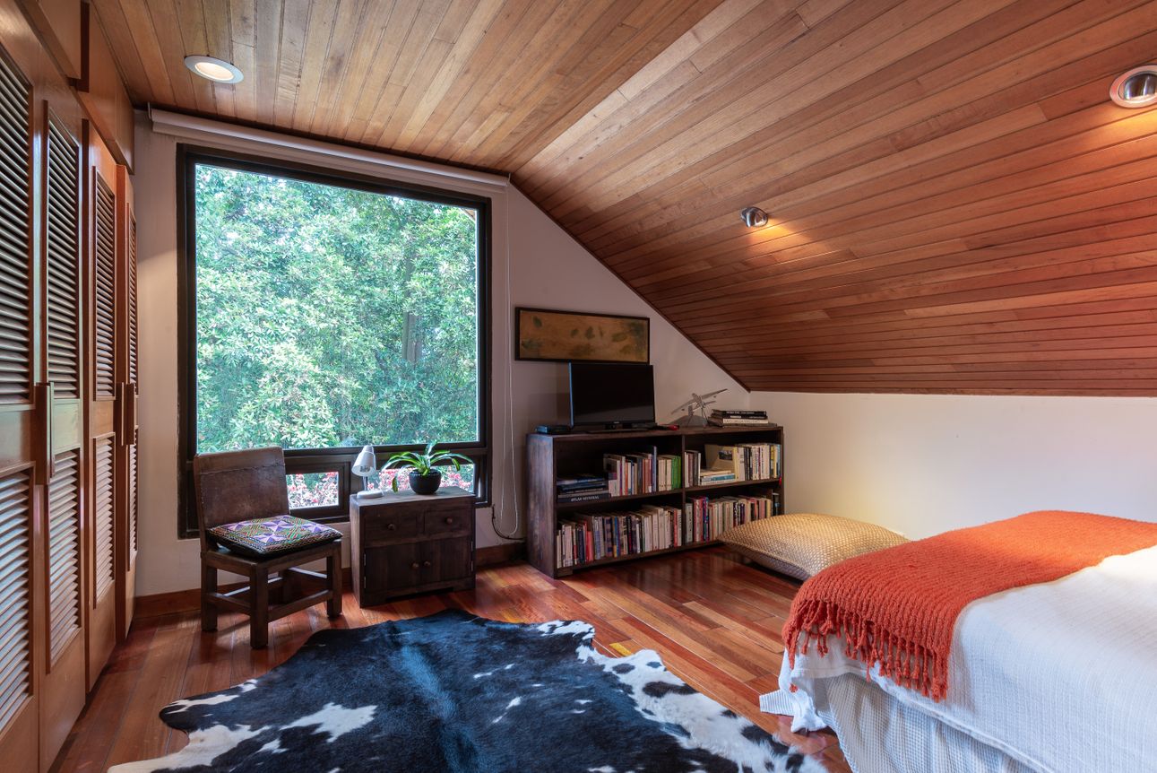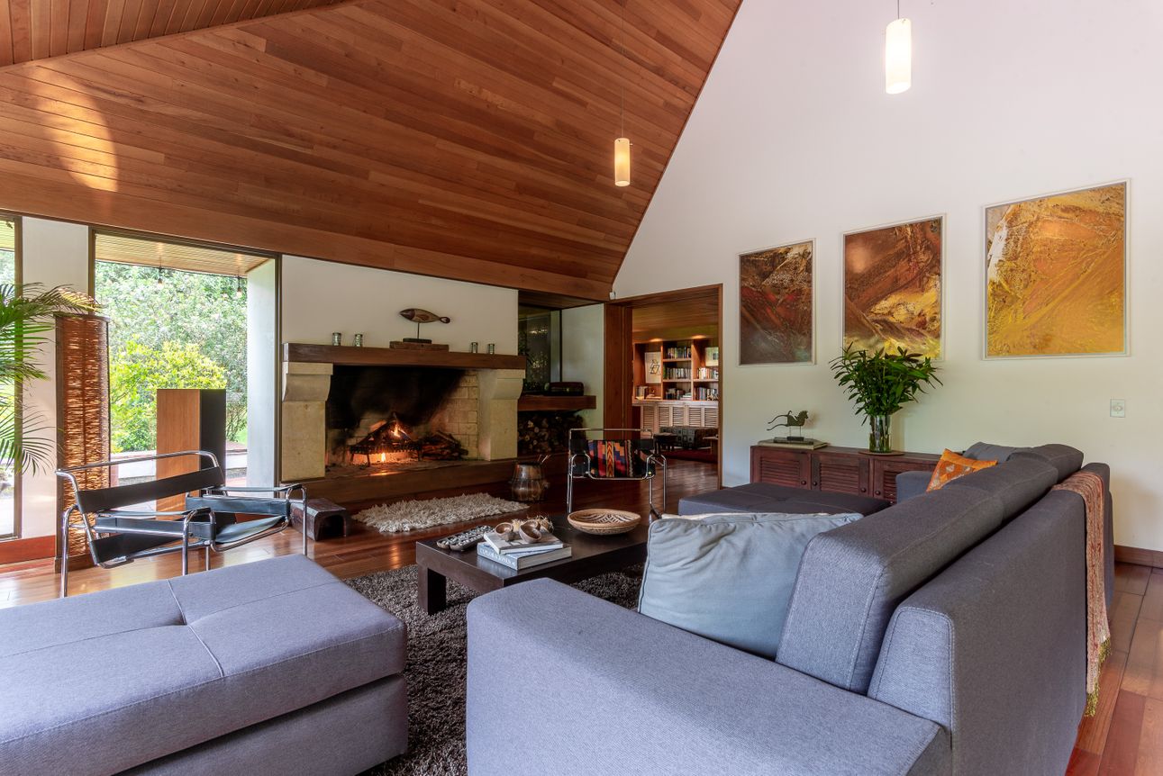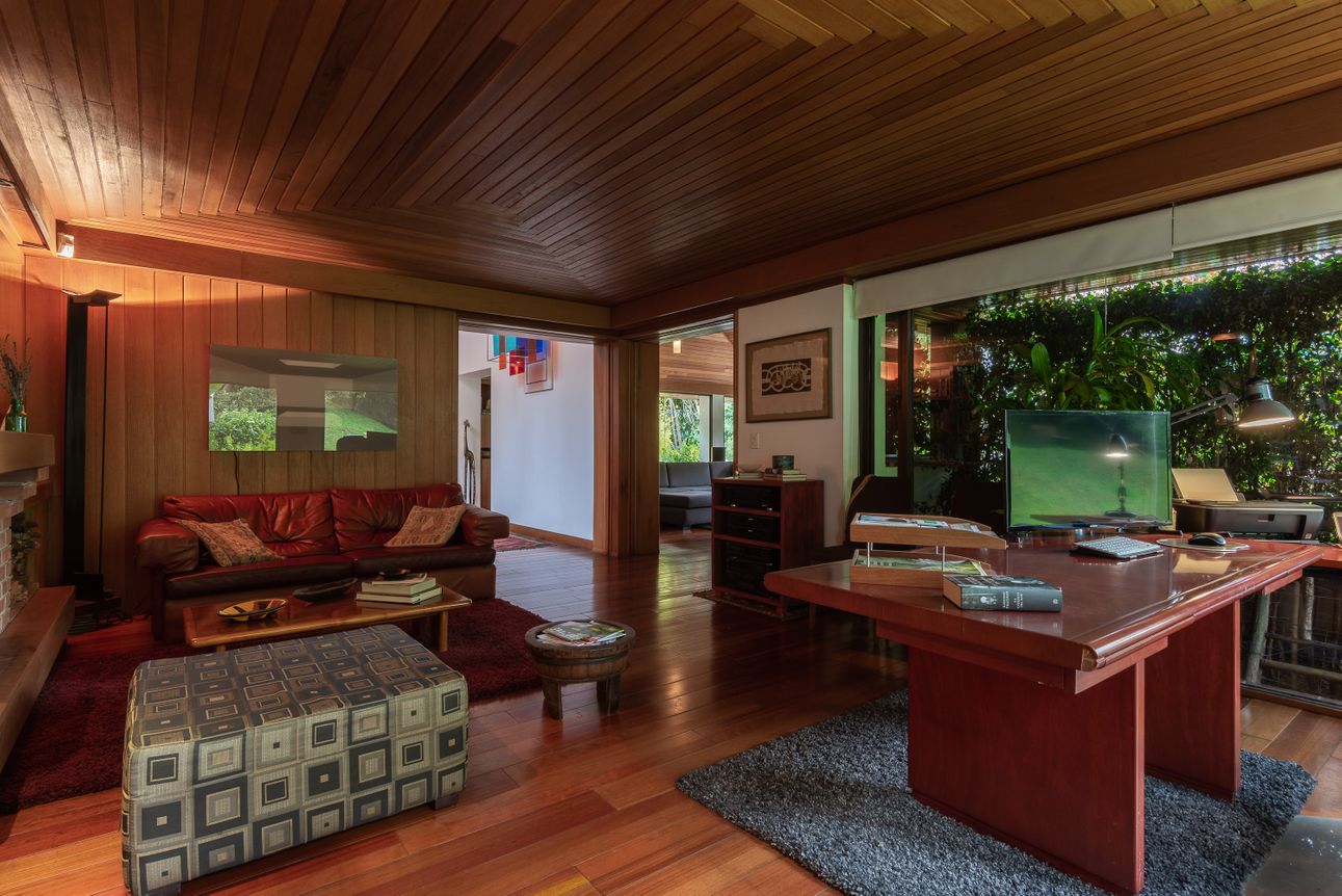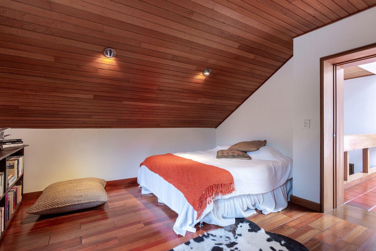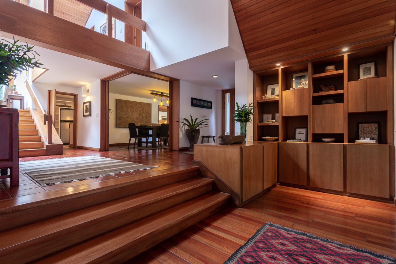 Se trata de una casa muy amplia, de estilo clásico donde predomina el contraste entre la madera y el verde de la naturaleza, que ingresa a la casa a través de sus amplios ventanales, que le dan mucha luz y calor durante todo el día.