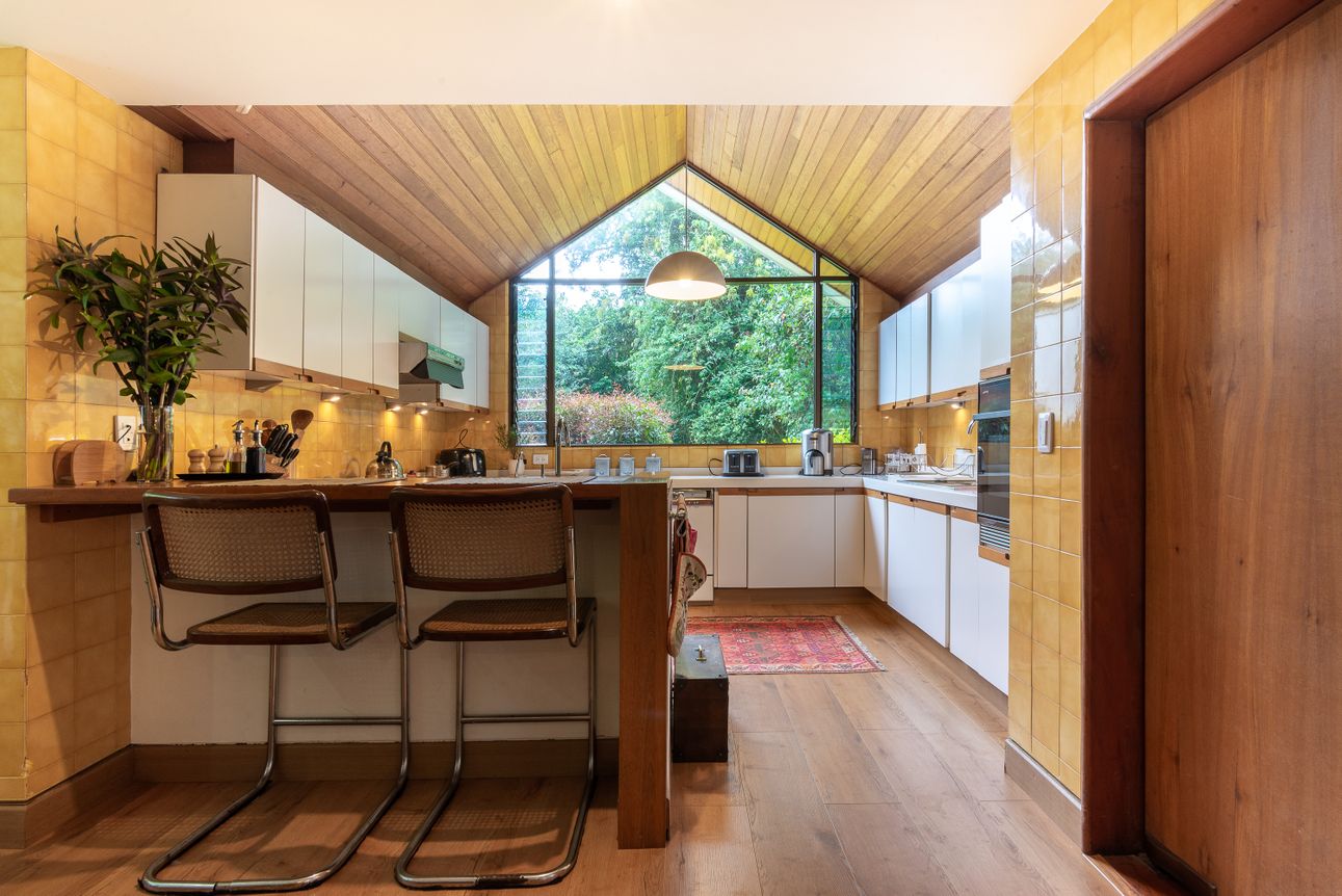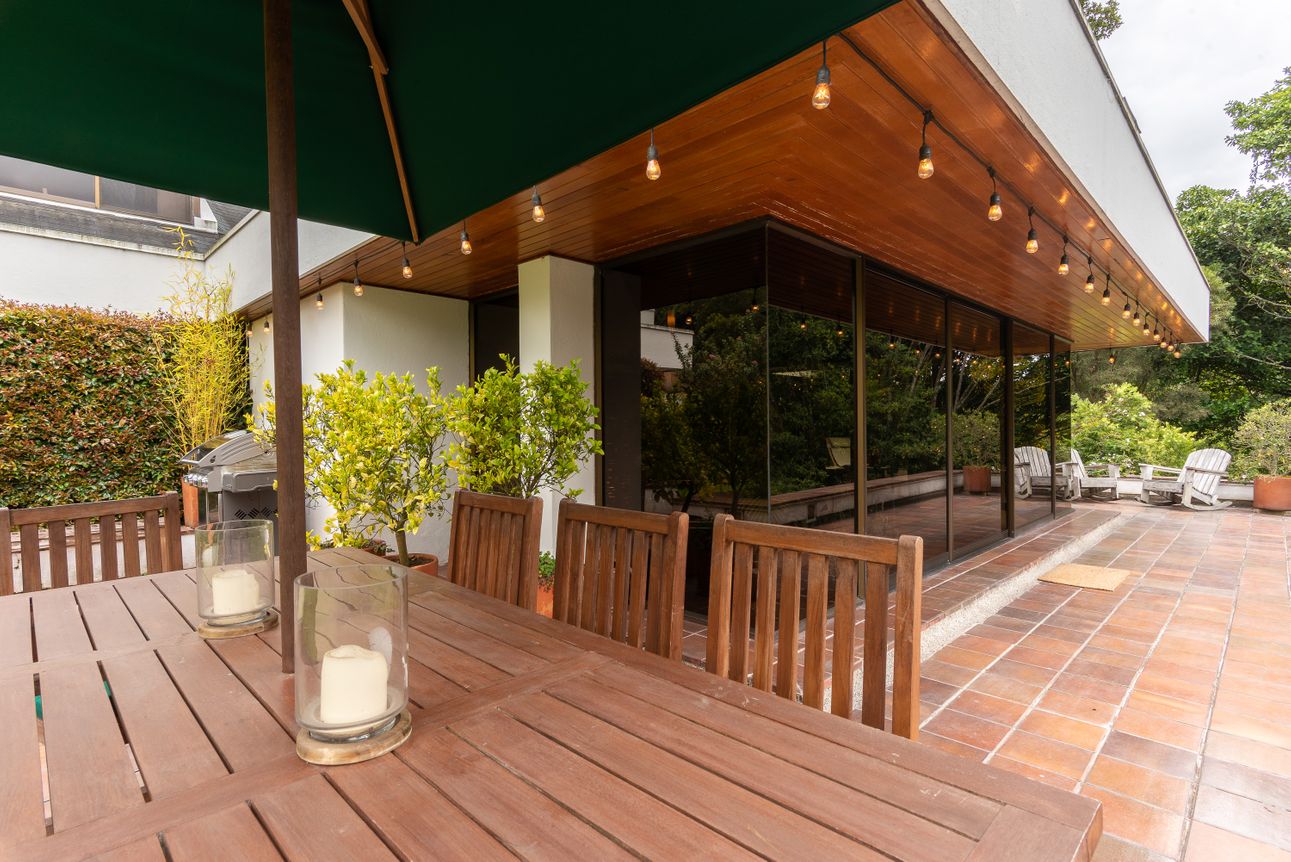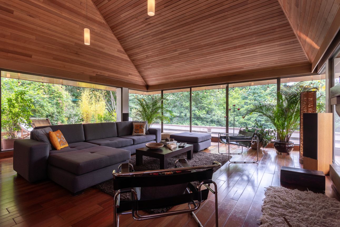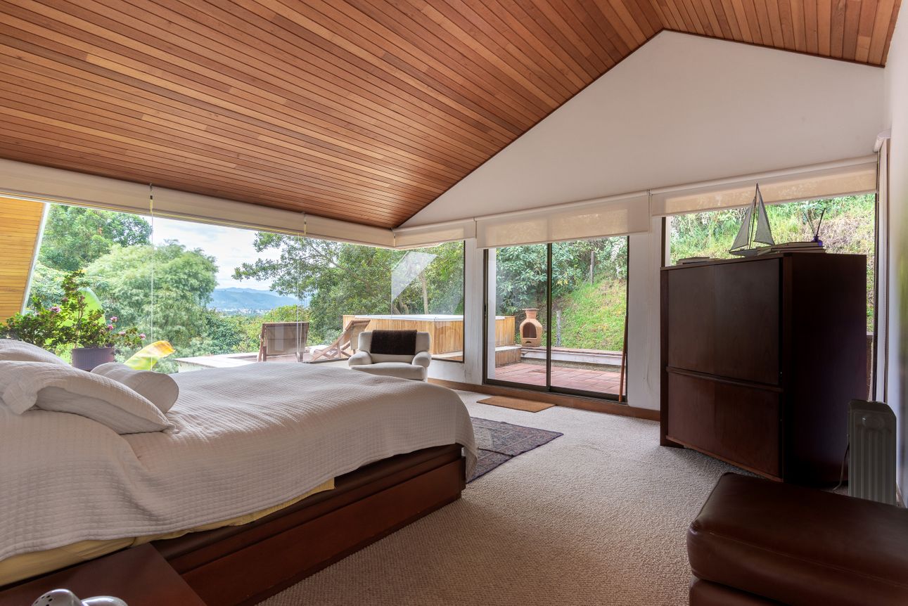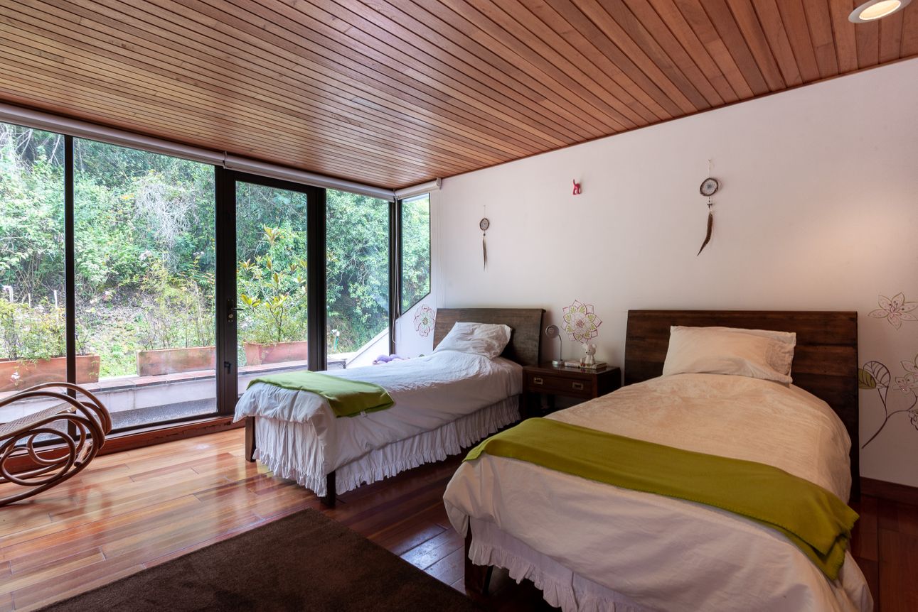 Se trata de una casa muy amplia, de estilo clásico donde predomina el contraste entre la madera y el verde de la naturaleza, que ingresa a la casa a través de sus amplios ventanales, que le dan mucha luz y calor durante todo el día.