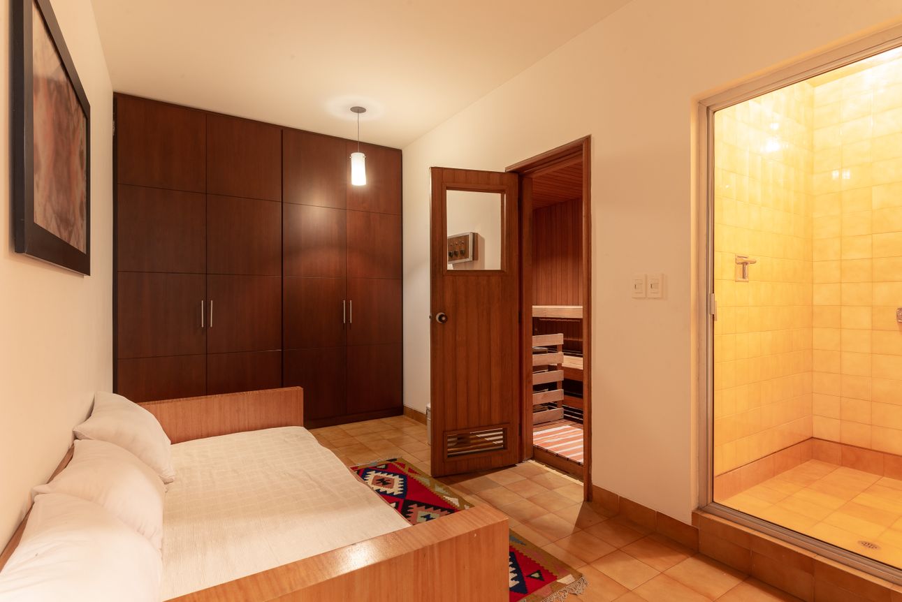 La casa cuenta con varios elementos de categoría que la convierten en única, el increíble lote de 10.000m2, un sauna privado y jacuzzi.