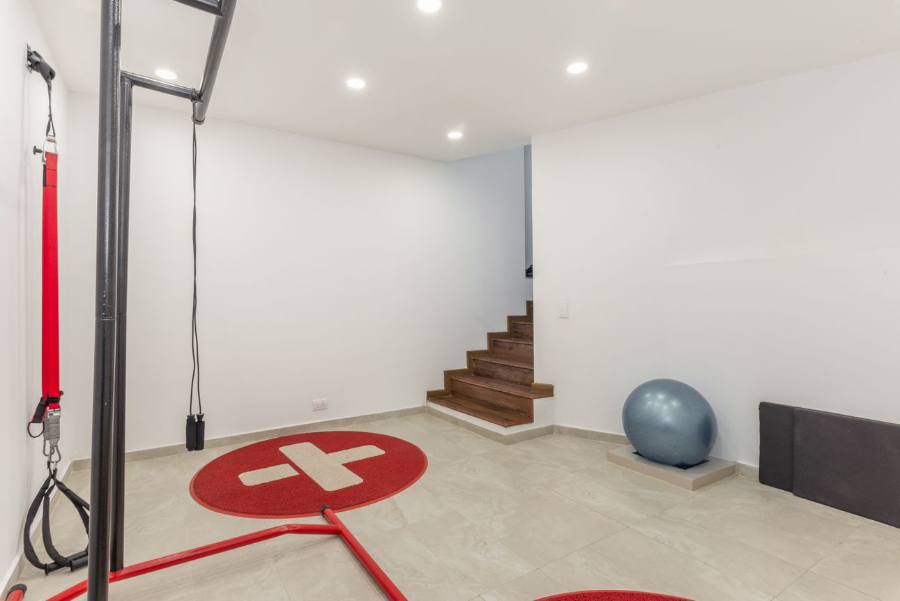 La casa se destaca por tener cinco habitaciones, cada una de ellas posee baño privado. Ideal para recibir visitas y que ellas cuenten con toda la comodidad necesaria. También posee un espacio adaptado para gimnasio en casa.