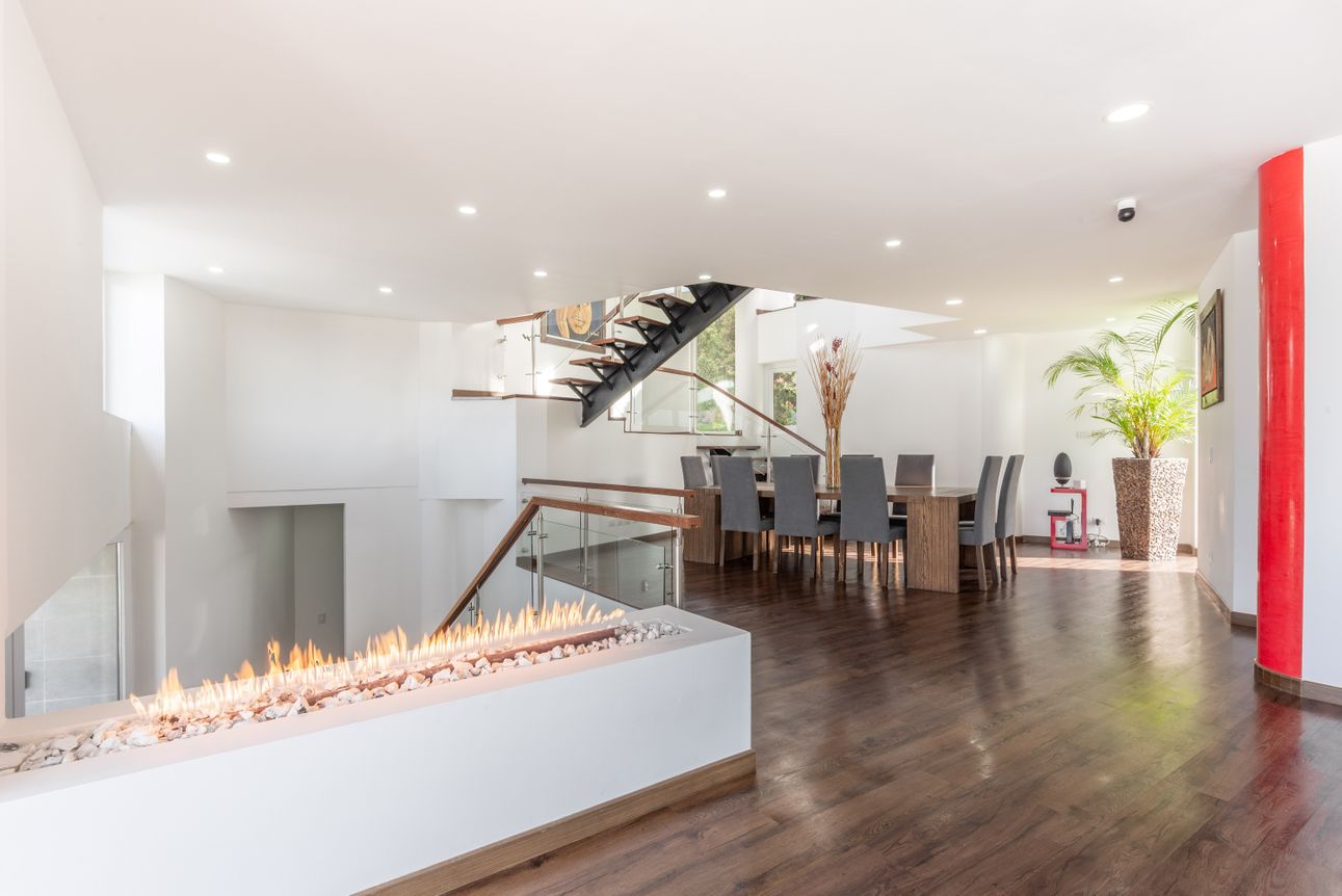 Al ingresar encontrarás una amplia sala, integrada con un gran balcón, gracias a sus amplios ventanales desde piso a techo. La sala se encuentra integrada junto con una lujosa cocina abierta, con barra americana. Este sector será parte importante de la rutina familiar. En el mismo nivel se encuentra ubicado un amplio comedor para, al menos, diez puestos.