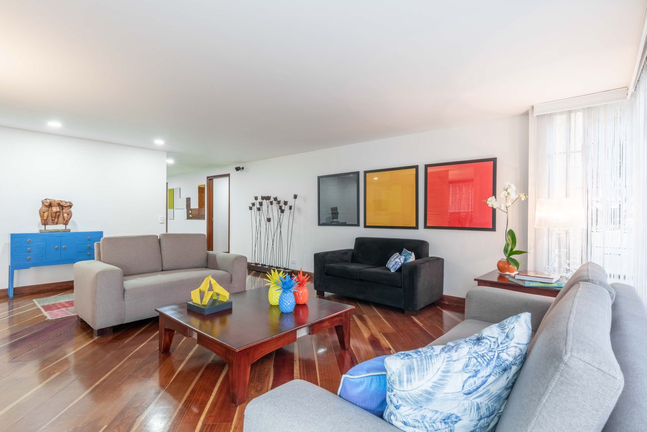 Este acogedor apartamento se arrienda amoblado y cuenta con 4 habitaciones, 3 de ellas con baño privado, y estar de tv, baño social, una amplia sala, comedor. La cocina remodelada es amplia y luminosa donde podrás disfrutar increíbles desayunos en familia. Zona de lavanderia y Cuarto y baño del servicio.