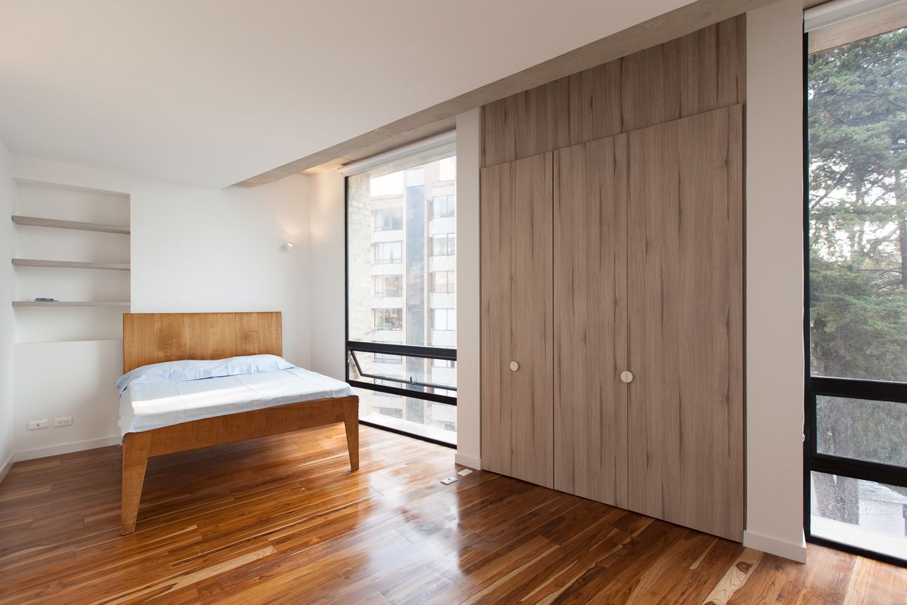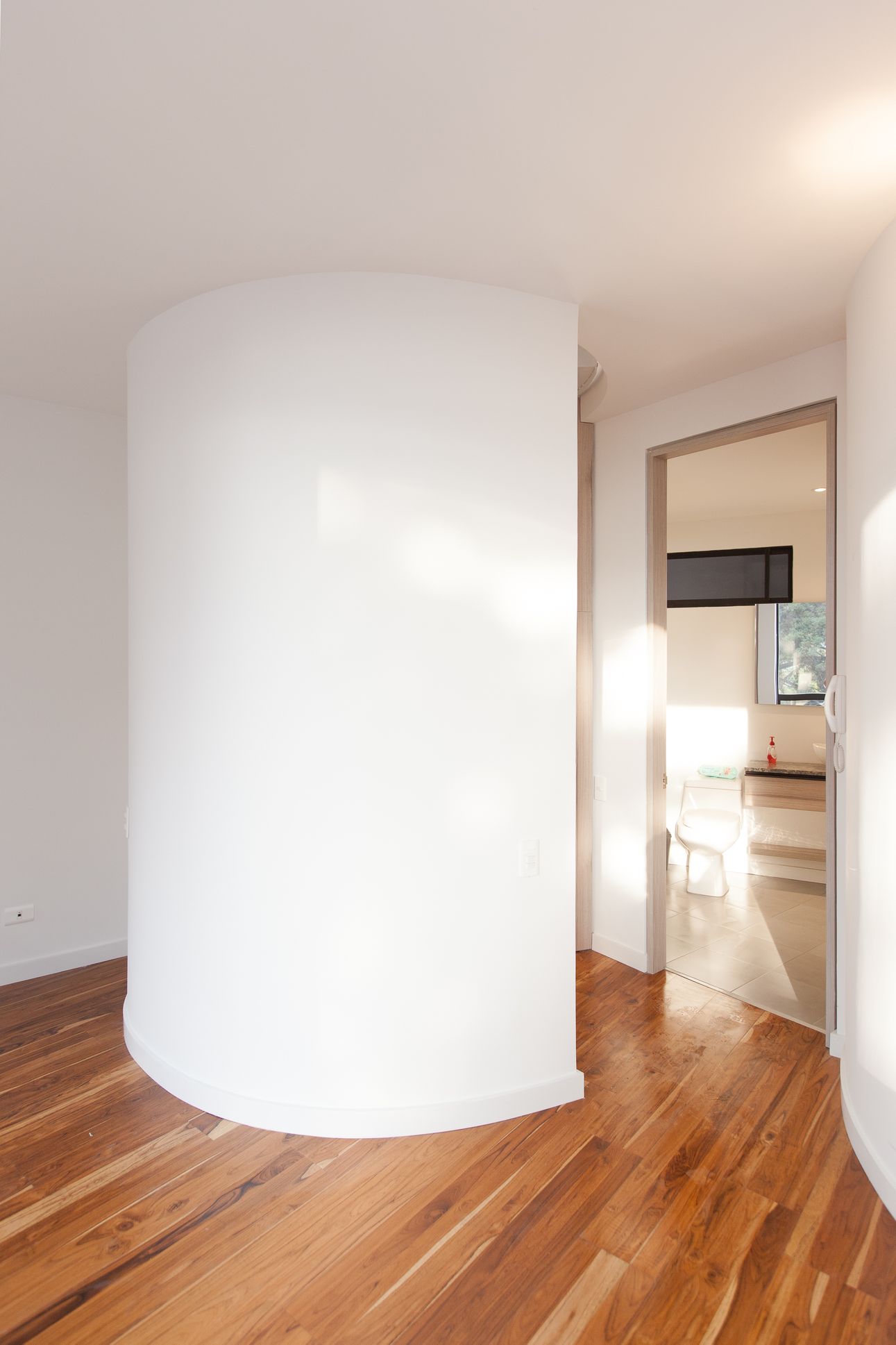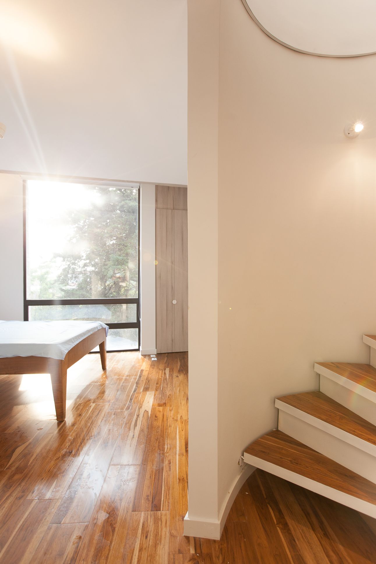 El apartamento es exterior, dúplex en el último piso (penthouse) con únicas y excepcionales alturas libres interiores entre 2.70m y 3.00m en la fachada. Cuenta con claraboya que permite la entrada adicional de luz cenital.