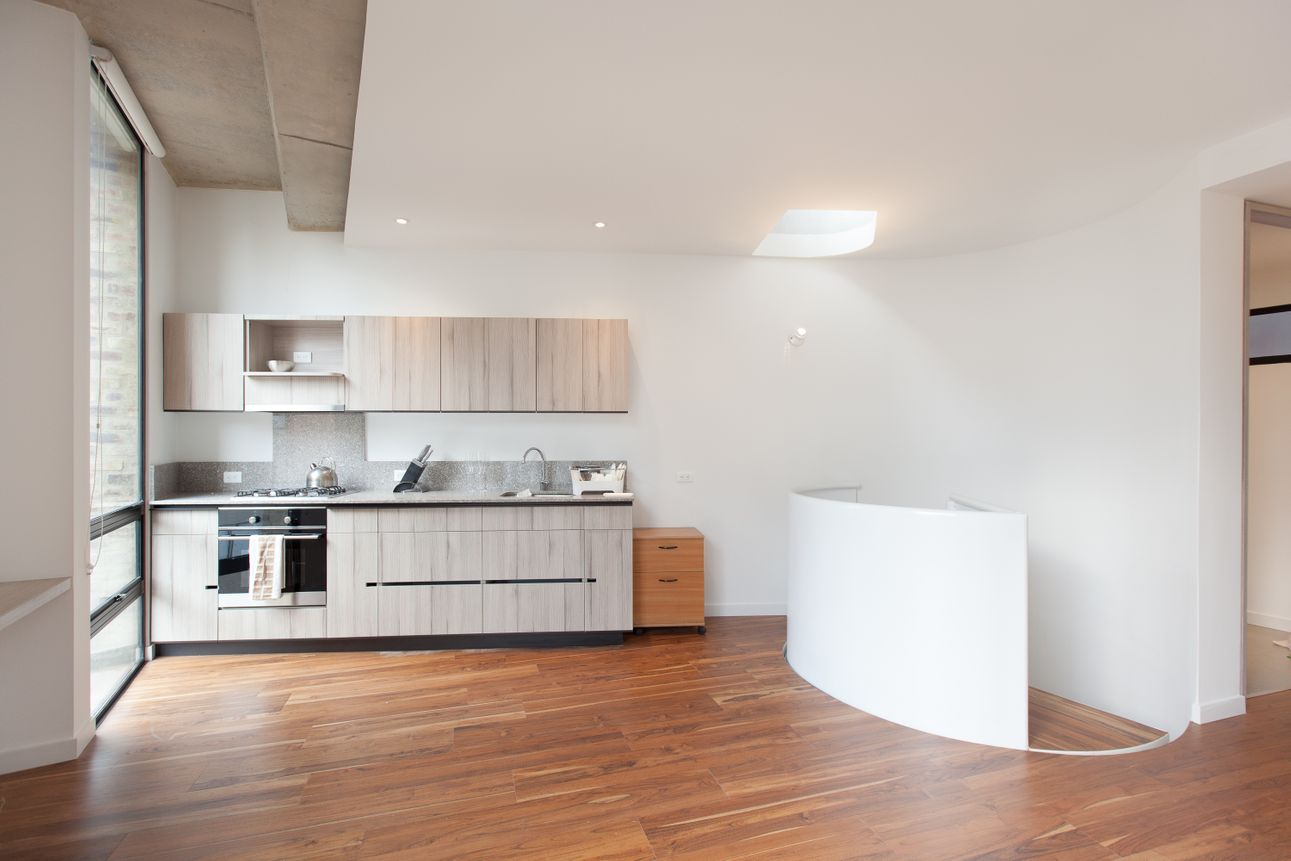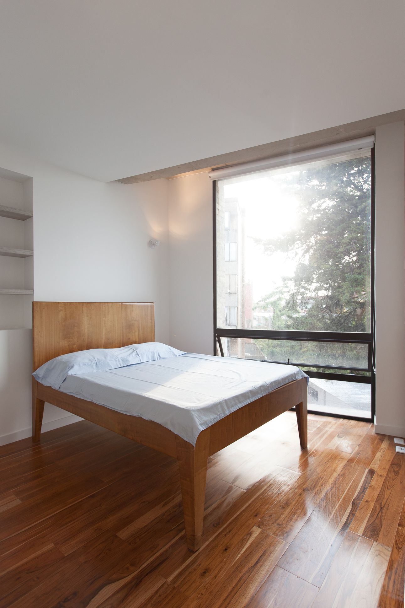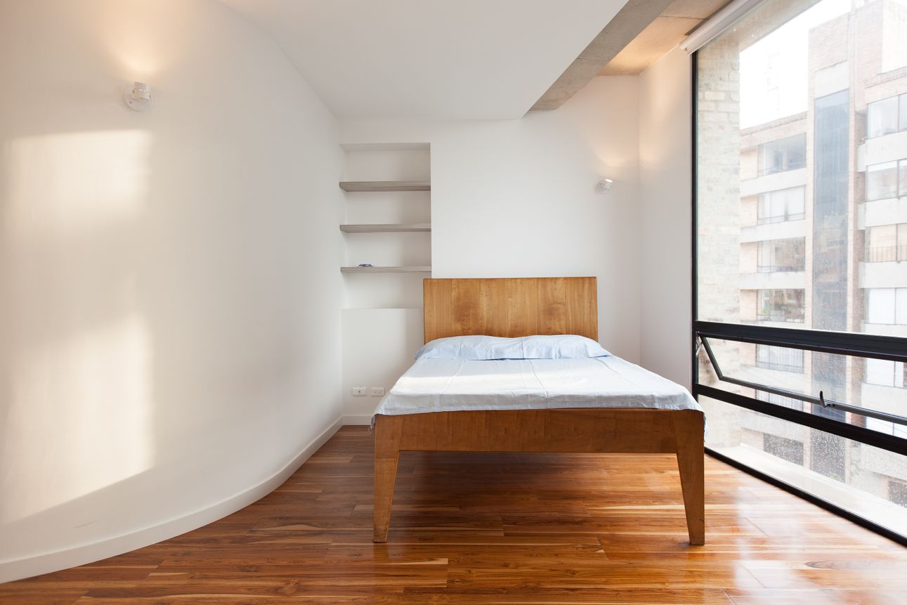 El apartamento es exterior, dúplex en el último piso (penthouse) con únicas y excepcionales alturas libres interiores entre 2.70m y 3.00m en la fachada. Cuenta con claraboya que permite la entrada adicional de luz cenital.