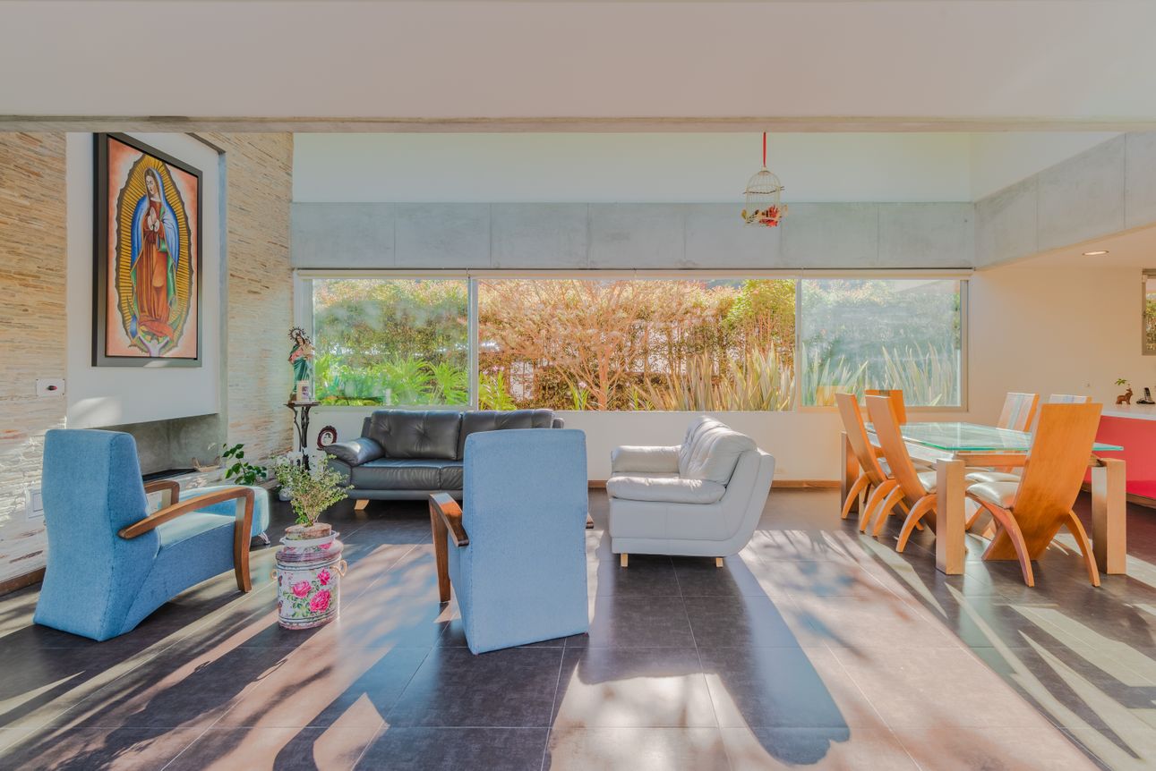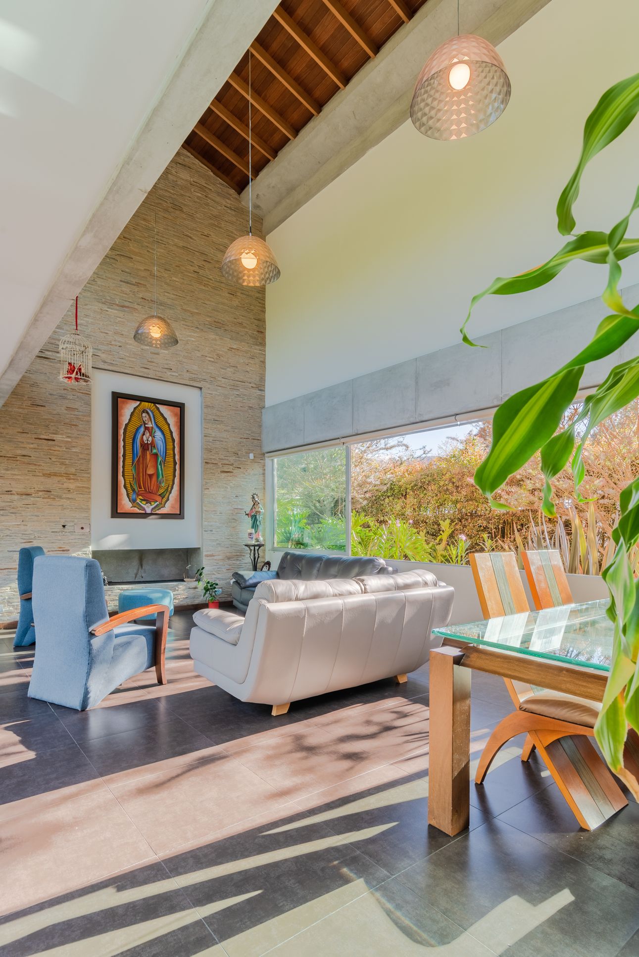 Rodeado de naturaleza y confort podrás disfrutar de esta hermosa casa con espacios amplios e iluminados. Su zona social tiene techos de gran altura y se compone de la sala, comedor, cocina abierta con excelentes acabados.