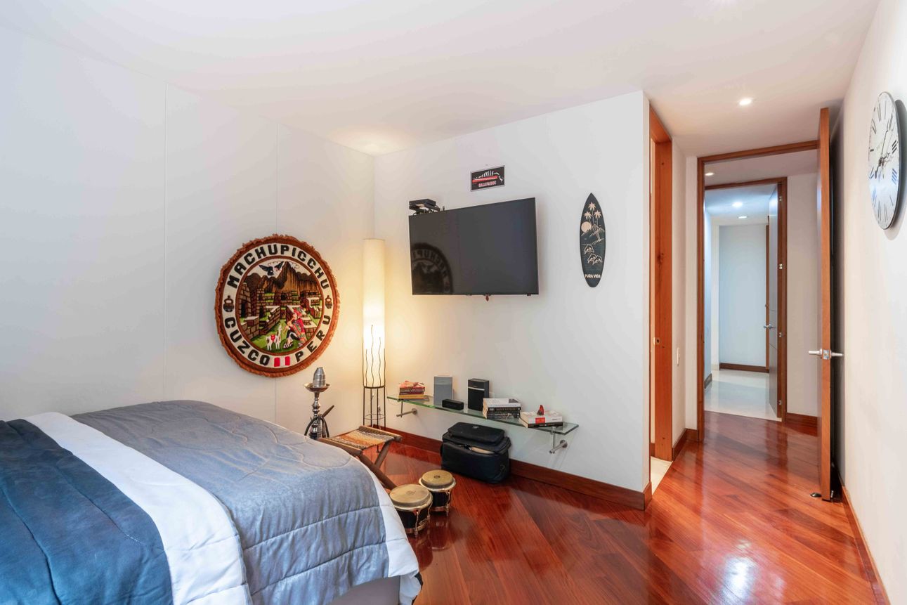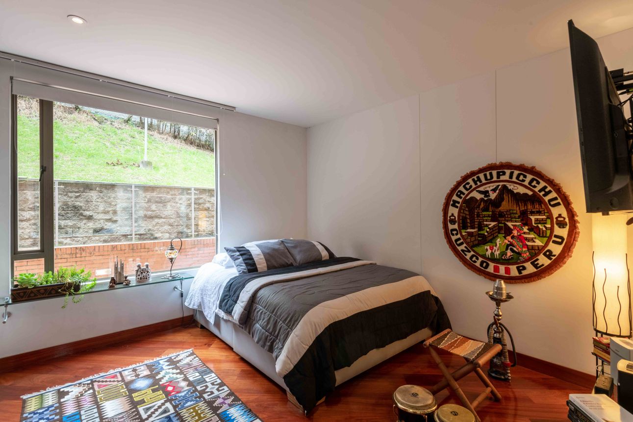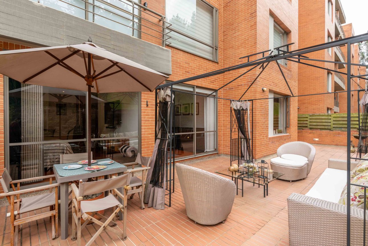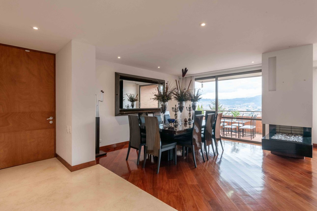 El área privada cuenta con tres habitaciones grandes cada una con baño y un family room o estudio. Uno de los mayores encantos del apartamento reside en sus dos terrazas de 110mts2 a las cuales accedes desde el comedor y el estudio, espacios ideales para reuniones familiares, compartir con amigos y todo con la mejor vista del sector hacia la ciudad y a la naturaleza de los cerros.