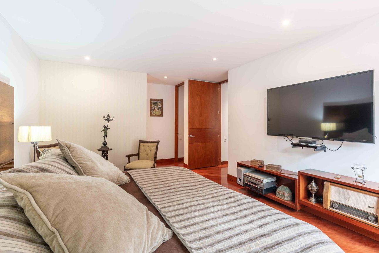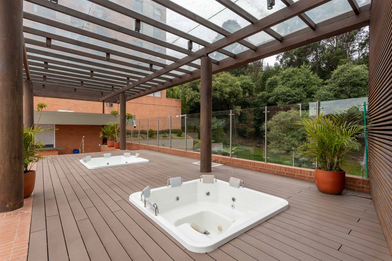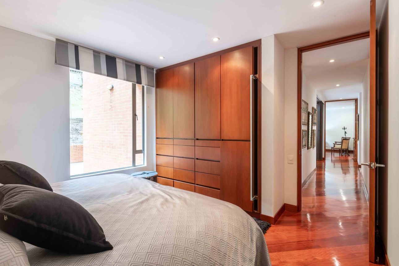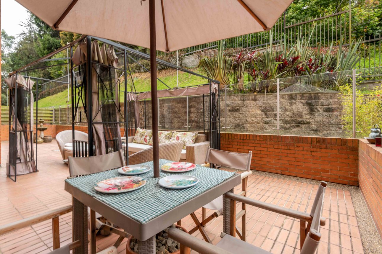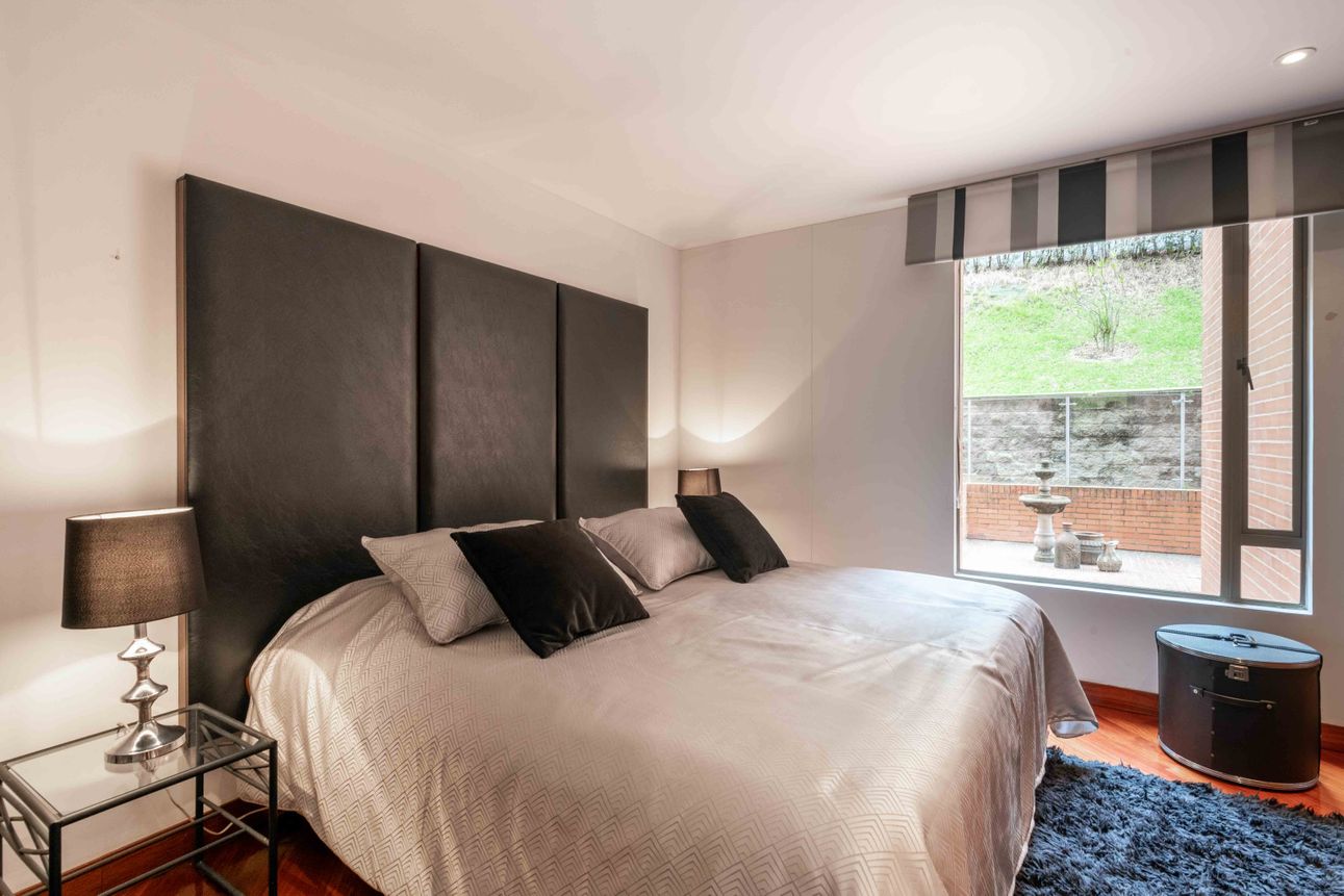 El área privada cuenta con tres habitaciones grandes cada una con baño y un family room o estudio. Uno de los mayores encantos del apartamento reside en sus dos terrazas de 110mts2 a las cuales accedes desde el comedor y el estudio, espacios ideales para reuniones familiares, compartir con amigos y todo con la mejor vista del sector hacia la ciudad y a la naturaleza de los cerros.