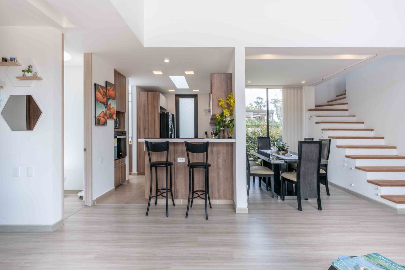 Tenemos el gusto de presentar esta linda casa en Cajicá al ingresar, encontrarás una amplia zona social con sala comedor conectada con una cocina abierta con excelentes acabados y zona de ropas, así como el baño social y un generoso estudio con salida a la terraza.