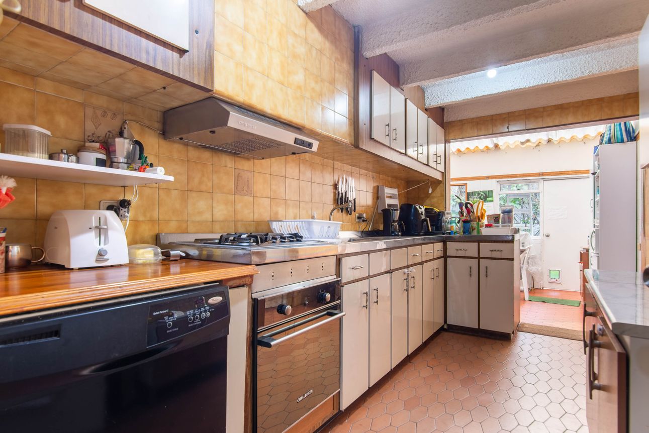 Al ingresar al inmueble encuentras una amplia zona social con sala - comedor, una parte de este ambiente posee claraboyas, un detalle que aporta iluminación a este espacio. También encuentras aquí la cocina cerrada de gran tamaño y, por supuesto, la salida a un jardín donde podrás disfrutar de los días soleados, espacio ideal si tienes mascota y hasta diseñar el jardín a tu gusto.