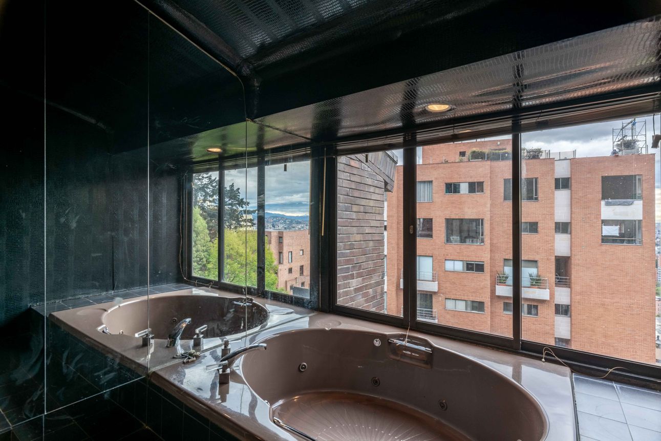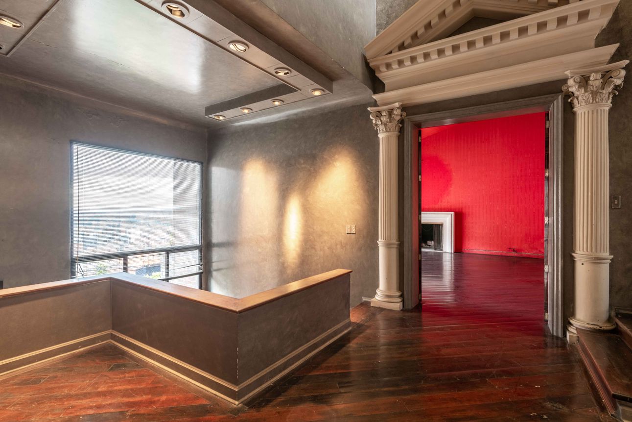 Tiene cuatro pisos con ascensor privado y doble altura. Amplia sala, comedor y estudio independiente con vista a la ciudad. Baño social. Cocina cerrada con zona de lavandería, cuarto y baño de servicio.