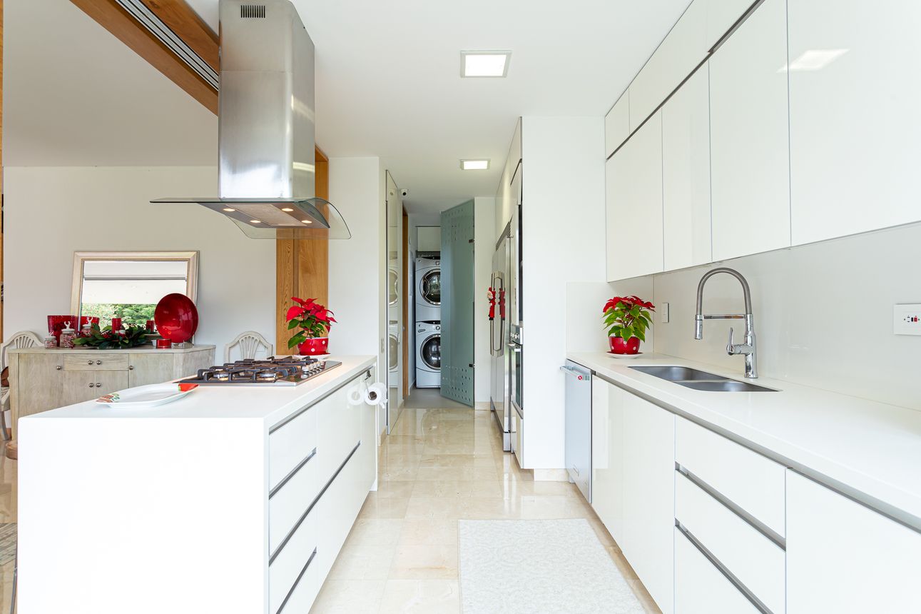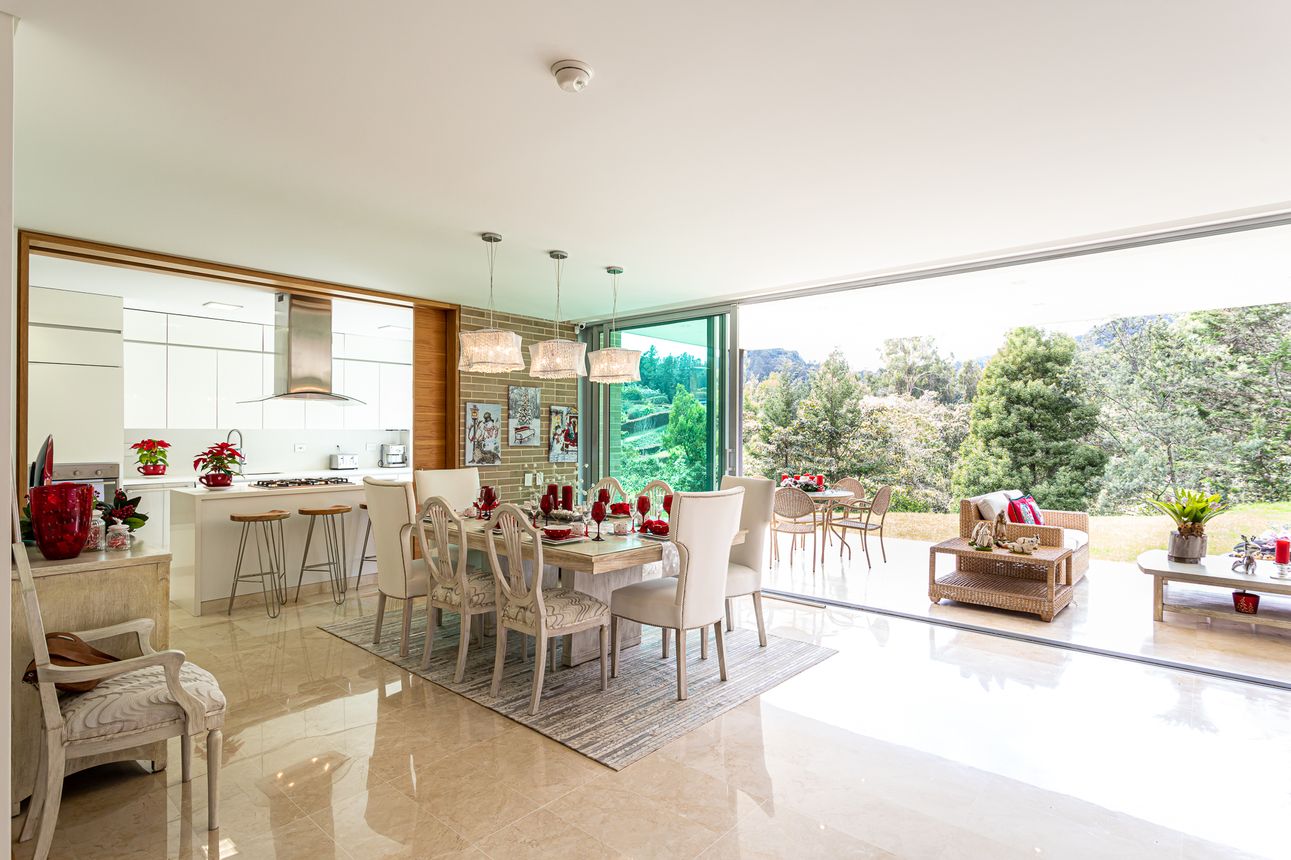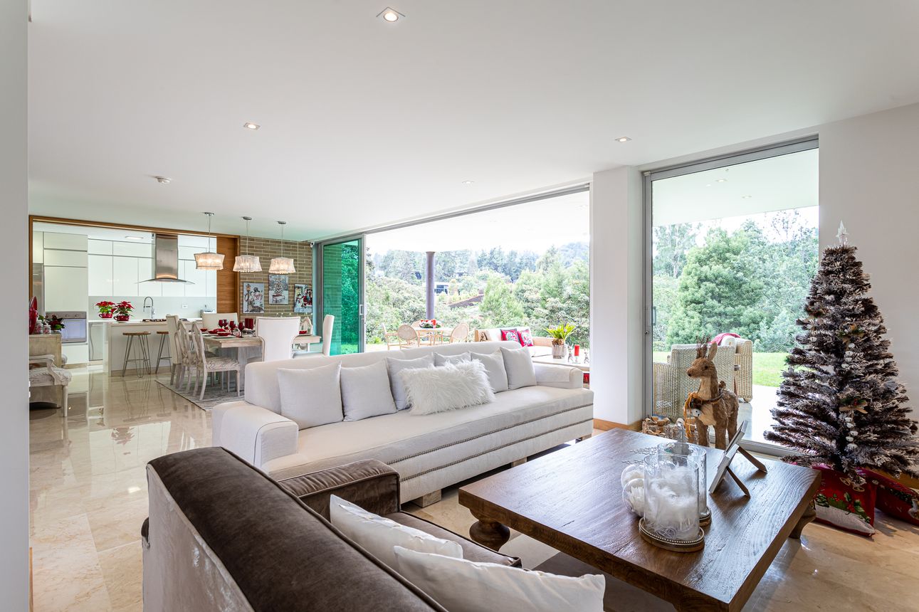 Al ingresar a la casa te encuentras con su amplia zona social, con sala-comedor integrado, acogedora chimenea a gas, estudio independiente, cocina abierta con acabados de alta gama, zona de servicio y lavandería.