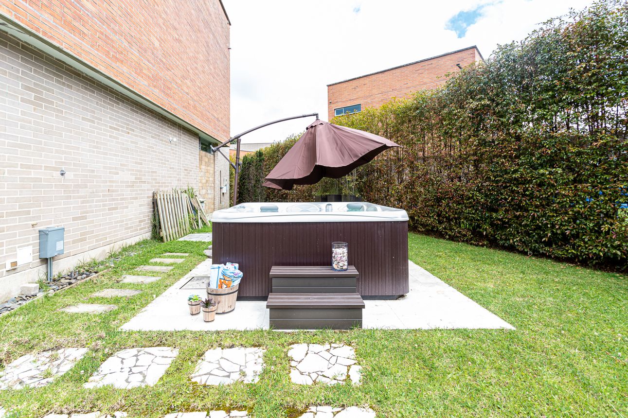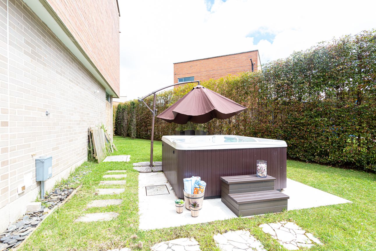 La zona exterior de la casa sin duda te encantará, deck cubierto con acceso al jacuzzi y al gran lote donde se encuentra una pequeña cancha de fútbol con gradería natural, huerta y fogatera.