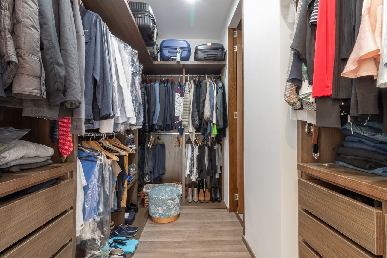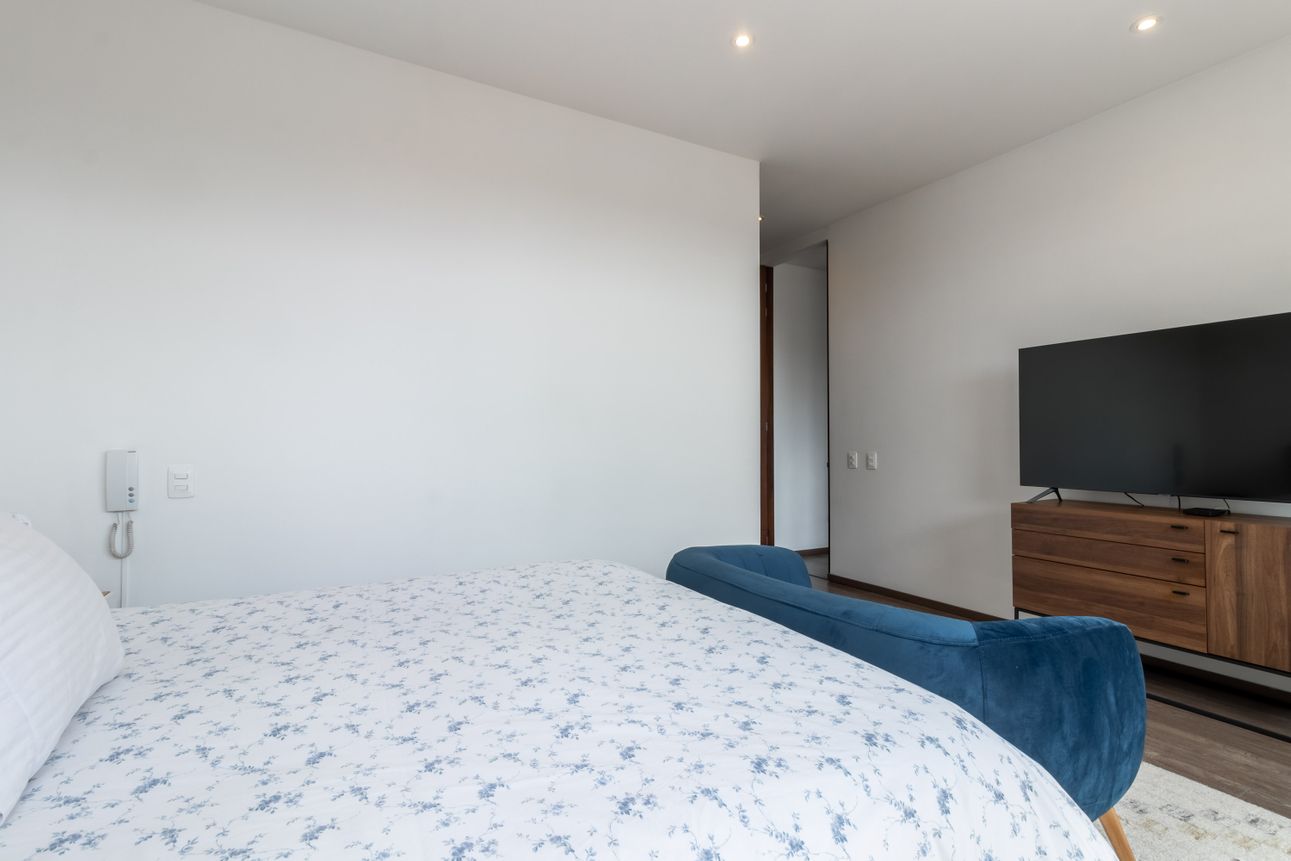 En el otro extremo sur del apartamento encontraras la zona privada , donde veras una habitación auxiliar con closet privado, un baño exterior dispuesto para esta habitación y una hermosa y amplia habitación principal con una gran vista e iluminación , baño privado y walk in closet .