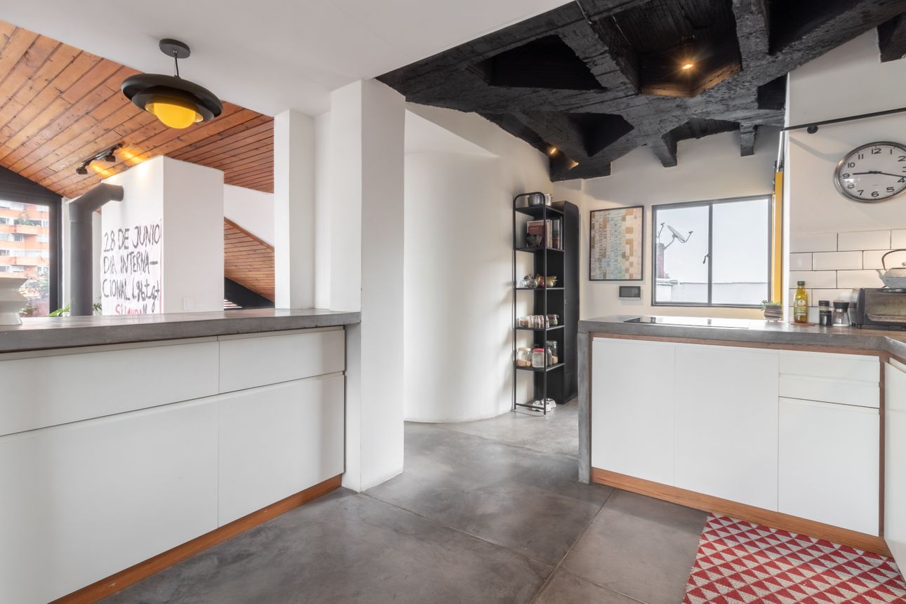 Este precioso apartamento penthouse fue renovado recientemente y está ubicado en uno de los lugares más emblemáticos de la ciudad, en el barrio de La Macarena y a menos de 15 minutos caminando del centro internacional, el Museo Nacional y varias universidades (Uniandes, Jorge Tadeo, Rosario).